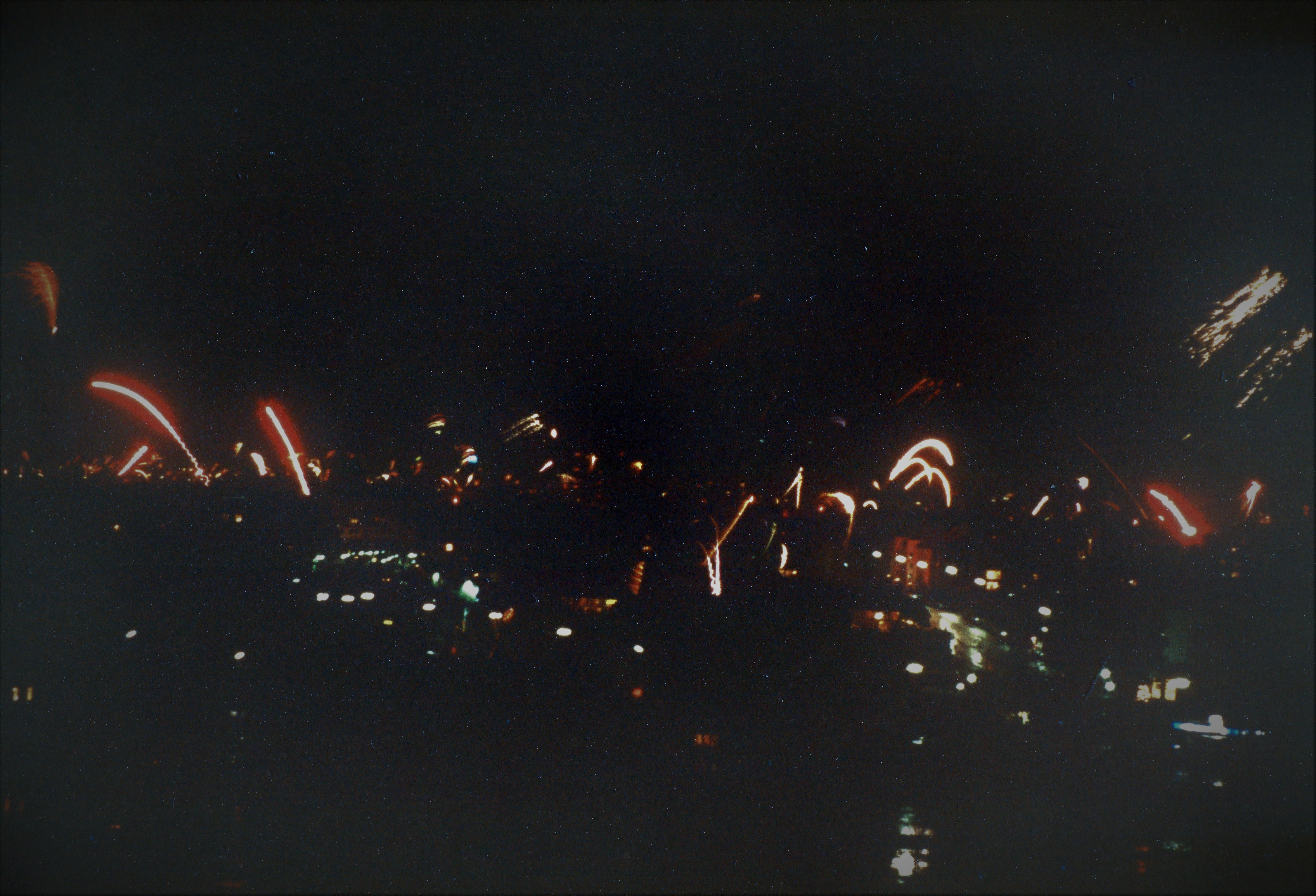 | Beschreibung | Blick über Fürth - Feuerwerk am Fürther Himmel zum Jahresübergang 1986 - 1987 | ||