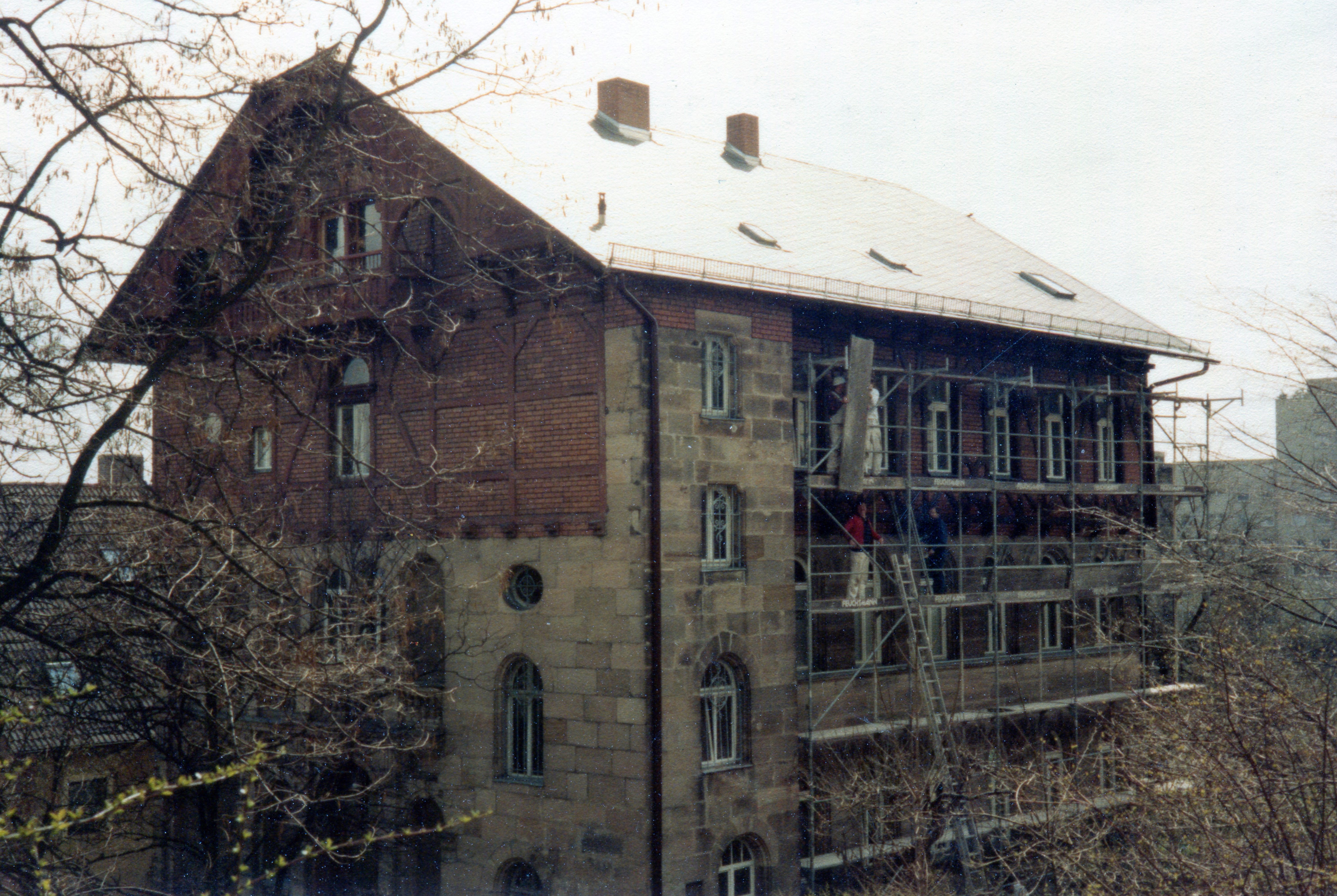 | Beschreibung | Renovierungs- und Gerüstarbeiten am Gebäude Jakob-Henle-Straße 38 im April 1985 | ||
