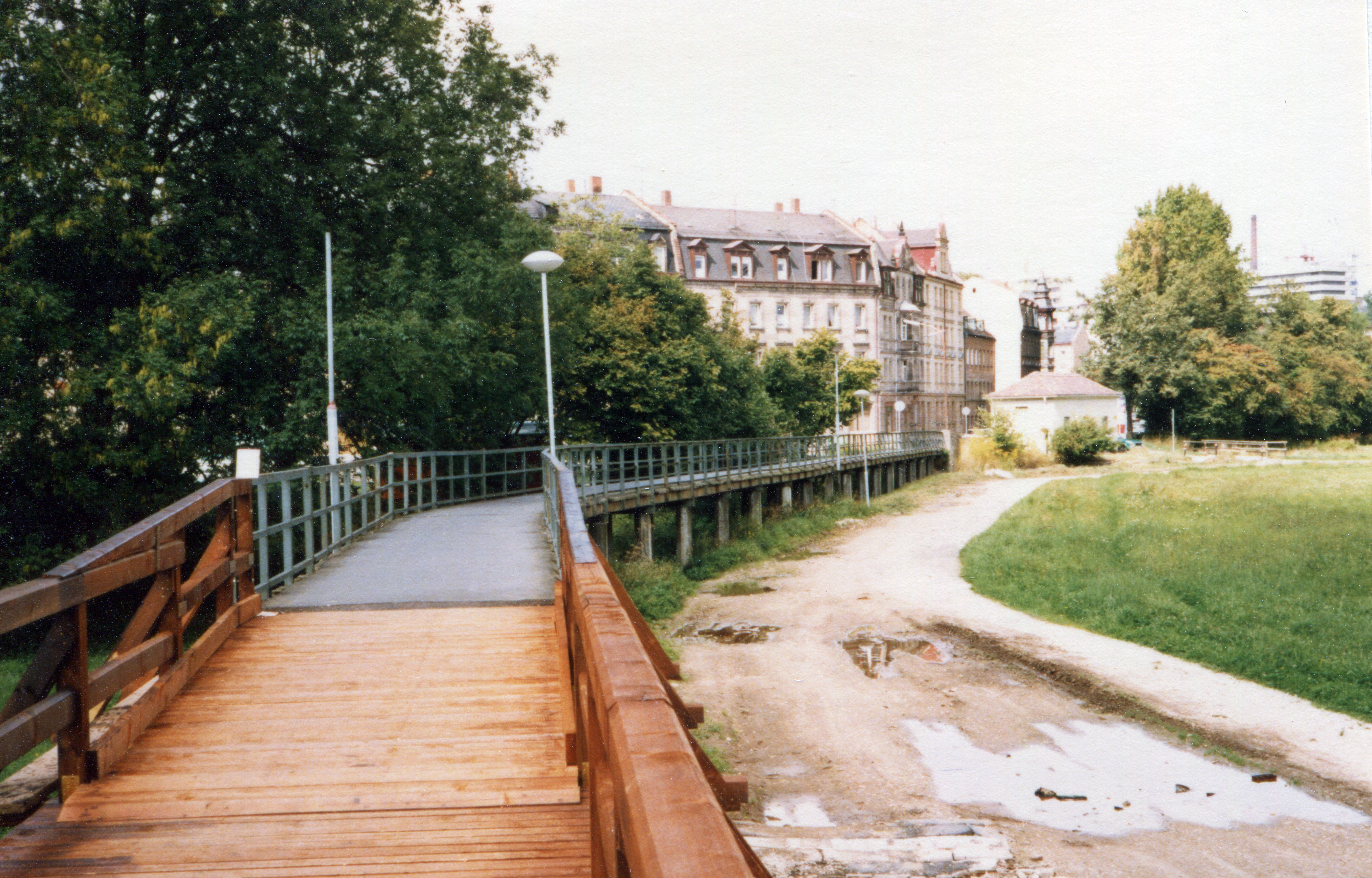 | Beschreibung | Im August mit Betonfertigteilen und Holzkonstruktion neu erstellter Hardsteg, Sept. 1986. | ||