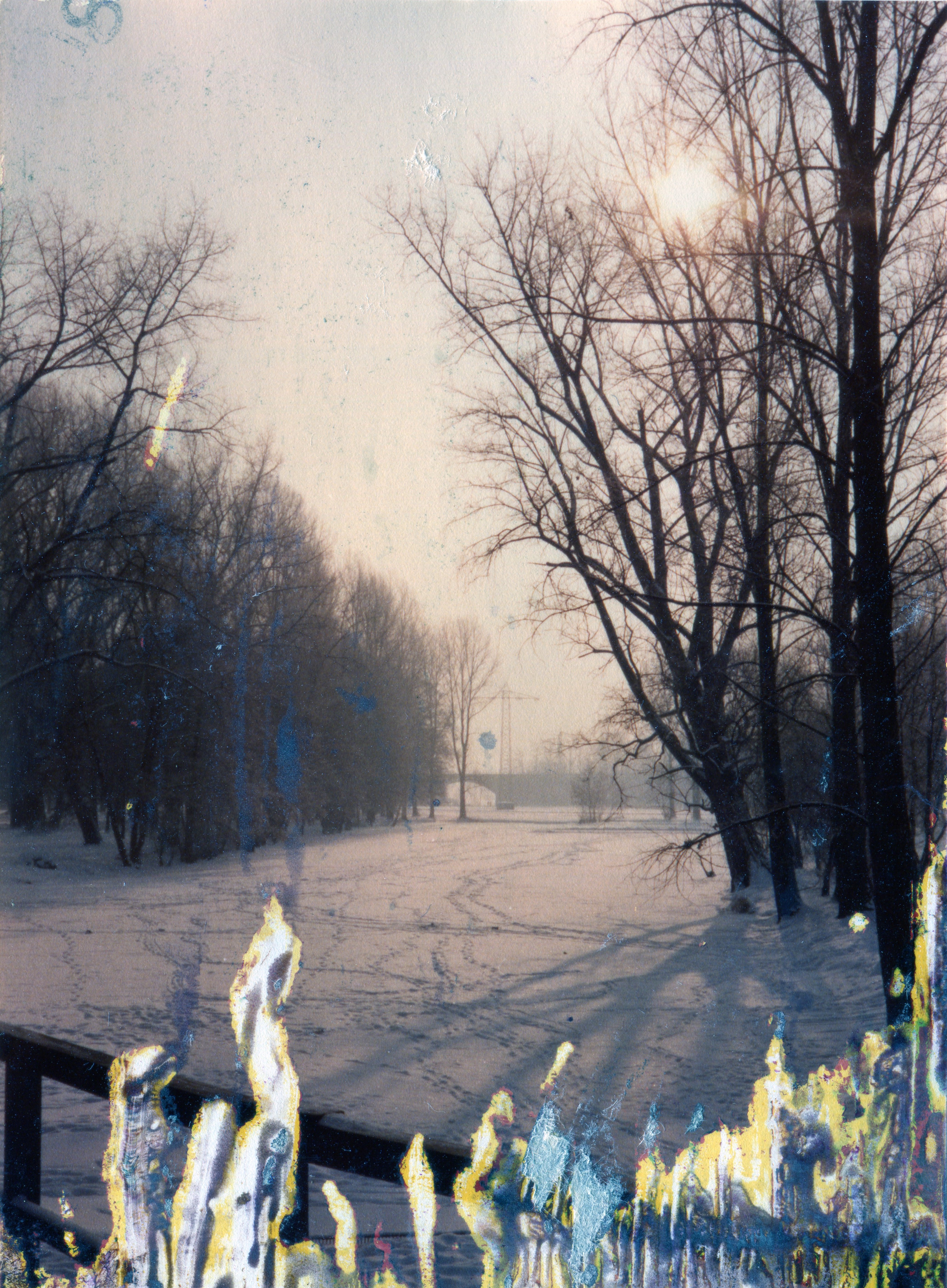 | Beschreibung | Der Waldmannsweiher, Januar 1985 – im Hintergrund die Siebenbogenbrücke, Aufnahme vom Hardsteg aus | ||