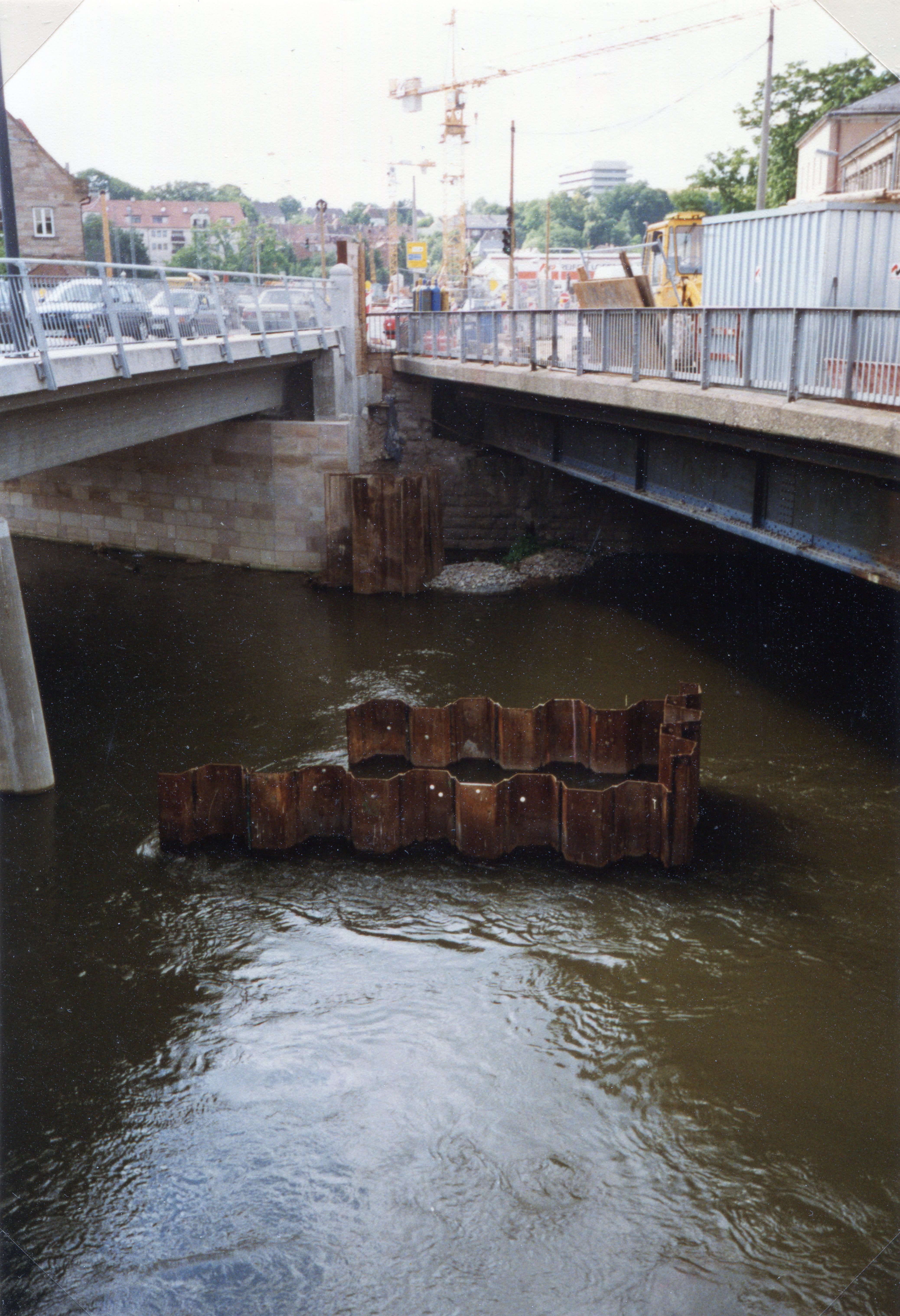 | Beschreibung | Blick auf die Maxbrücke Richtung Billinganlage mit U-Bahn Baustelle im Juli 1996 | ||