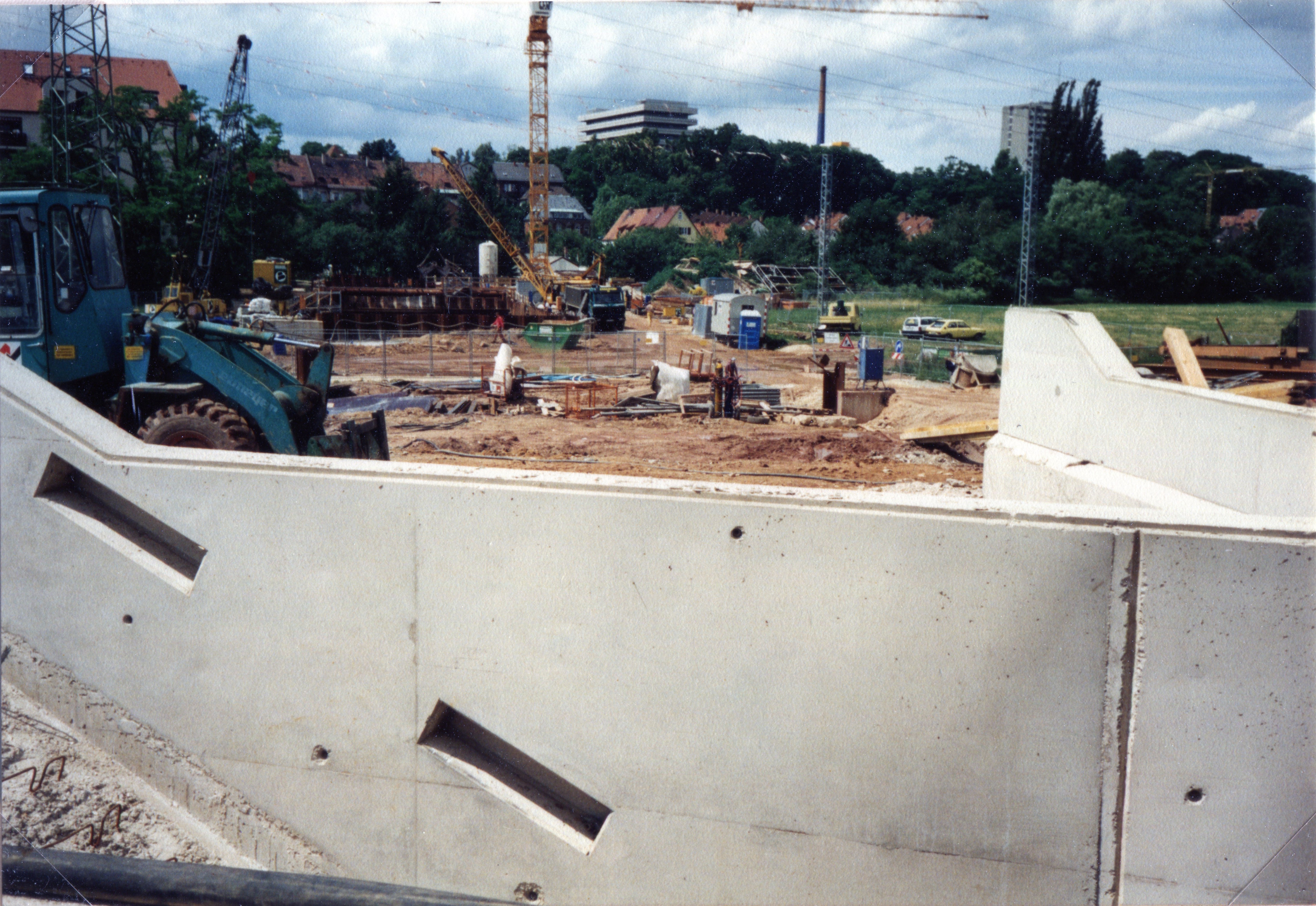 | Beschreibung | Bauarbeiten Treppenaufgang U-Bahnhof Stadthalle Blickrichtung Vacher Straße im Juli 1996 | ||