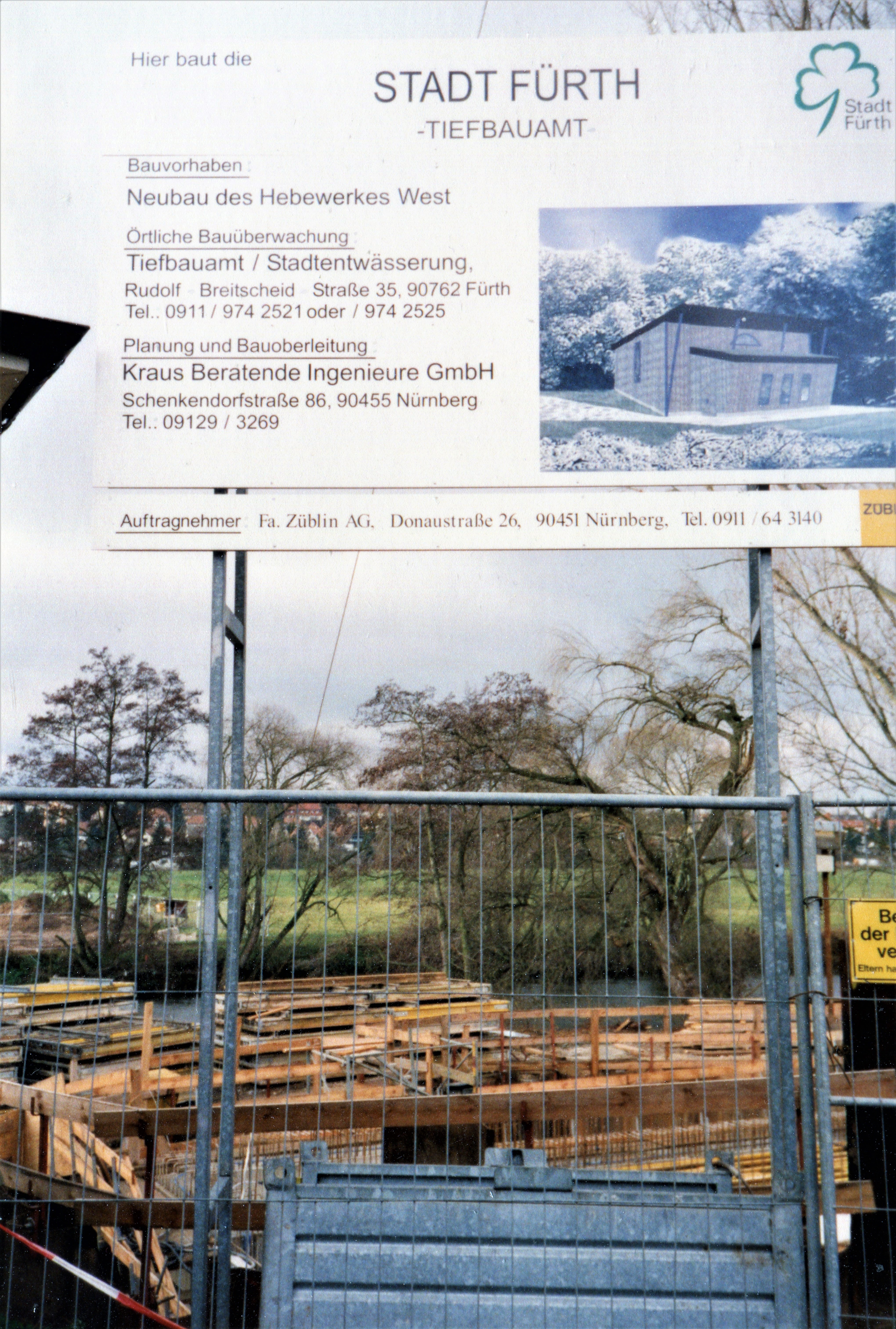 | Beschreibung | Bauschild Neubau Hebewerk West für die "Schmutzwasserschiene Nord", Dezember 1999 | ||