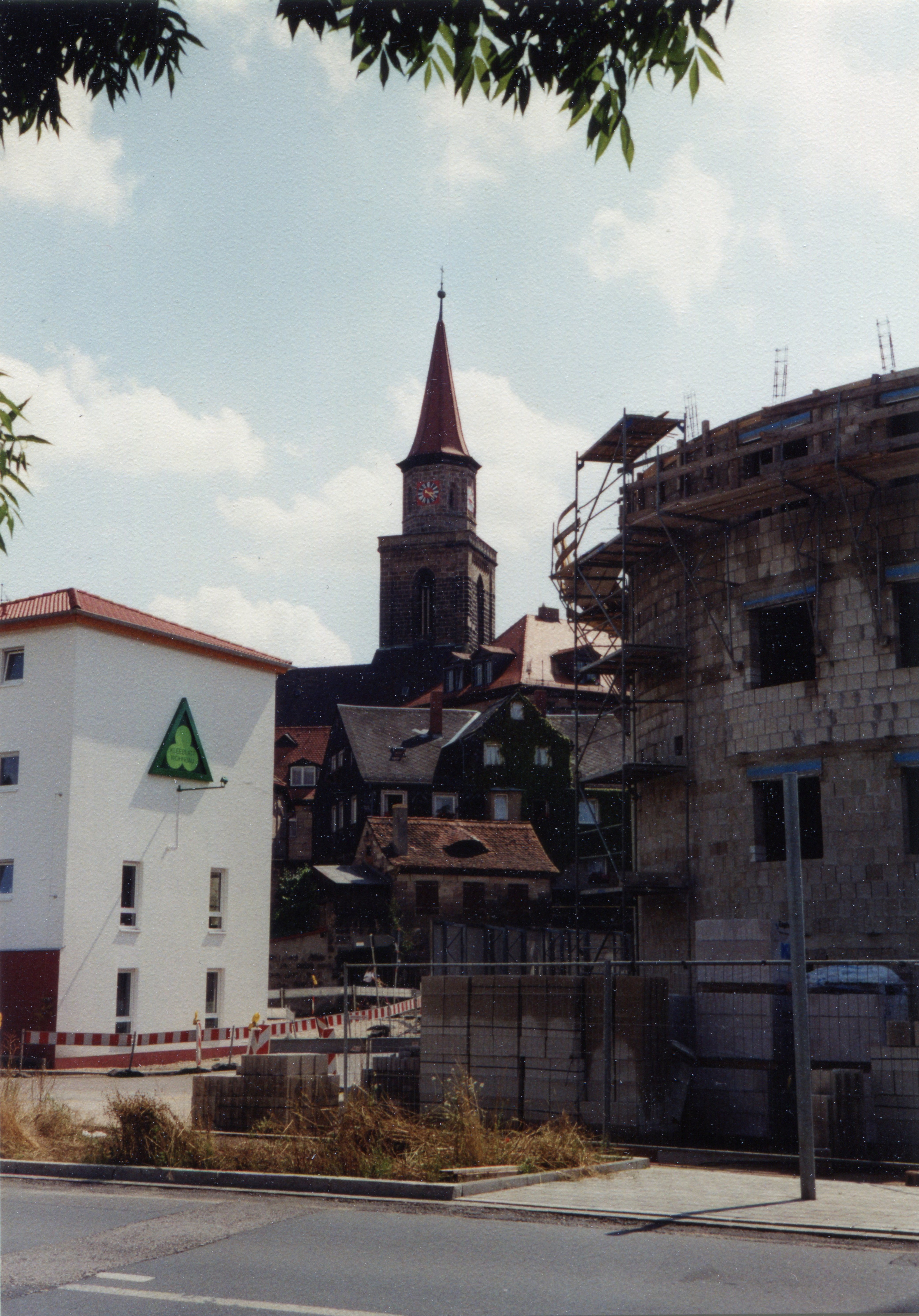 | Beschreibung | Rundbau Heiligenstraße 31 im Rohbau vom 2. Bauabschnitt der Reihenhäuser an der Einmündung der Heiligenstraße in die Nordspange. Links fertiger Turmbau Abschluss des 1. BA Heiligenstraße 33-59 mit Werbung der "Kleeblatt Wohnbau" Baufirma im April 1999 | ||