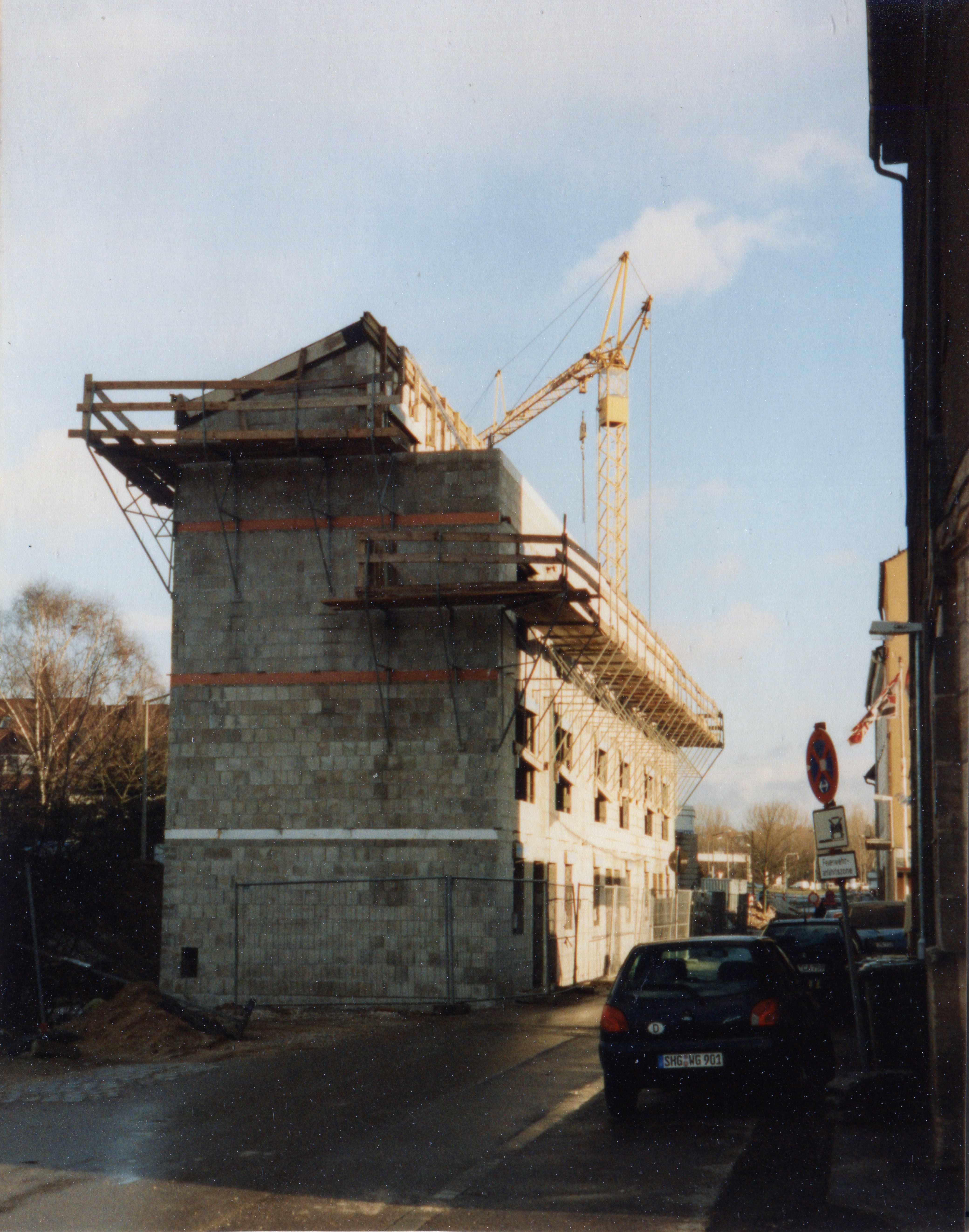 | Beschreibung | Rohbau der letzten Häuser Pegnitzstraße 16/22 Spitzname "Stockzahn" und Abschluss vom 2. Bauabschnitt der Reihenhäuser vom Schießplatz aus. Rechts alte Bebauung an der Pegnitzstraße im April 1999 | ||