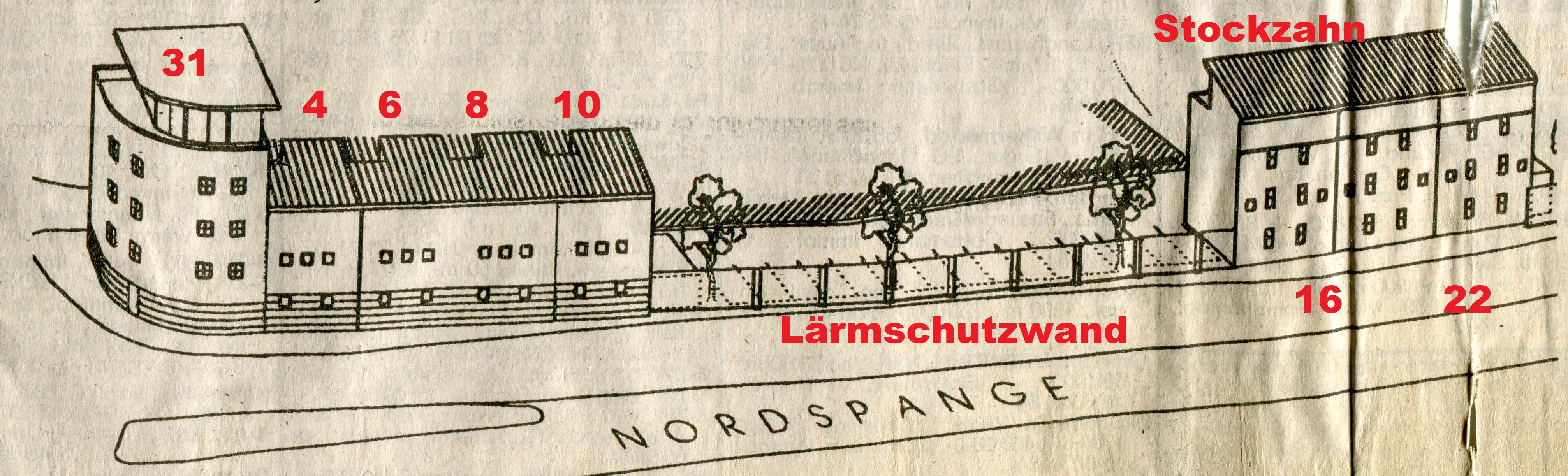 | Dateiinfo (Bild-Unterschrift und Info-Box, automatisch erstellt) | Plan des 2. Bauabschnittes der als Lärmschutzwall geplanten Reihenhäuser an der Nordspange Richtung ... Plan des 2. Bauabschnittes der als Lärmschutzwall geplanten Reihenhäuser an der Nordspange Richtung Angerstraße als Fortsetzung des 1. BA Heiligenstraße 33-59 im Juni 1999<br>Urheber: Fürther Nachrichten<br><br>Lizenz: CC BY-SA 3.0 | ||