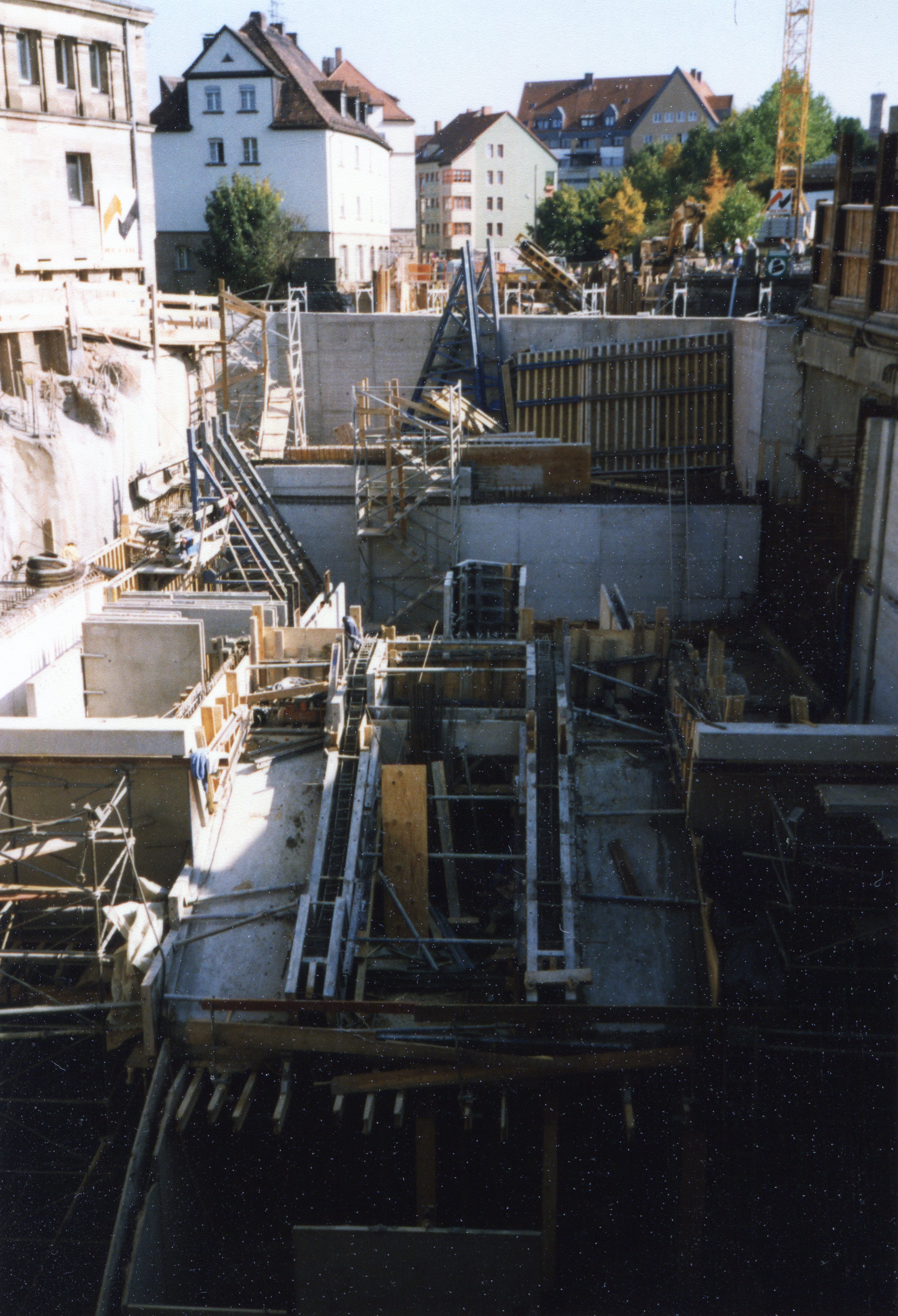 | Beschreibung | Tiefbauarbeiten am neuen U-Bahnhof Stadthalle vor dem heutigen Kulturforum im Oktober 1997 | ||