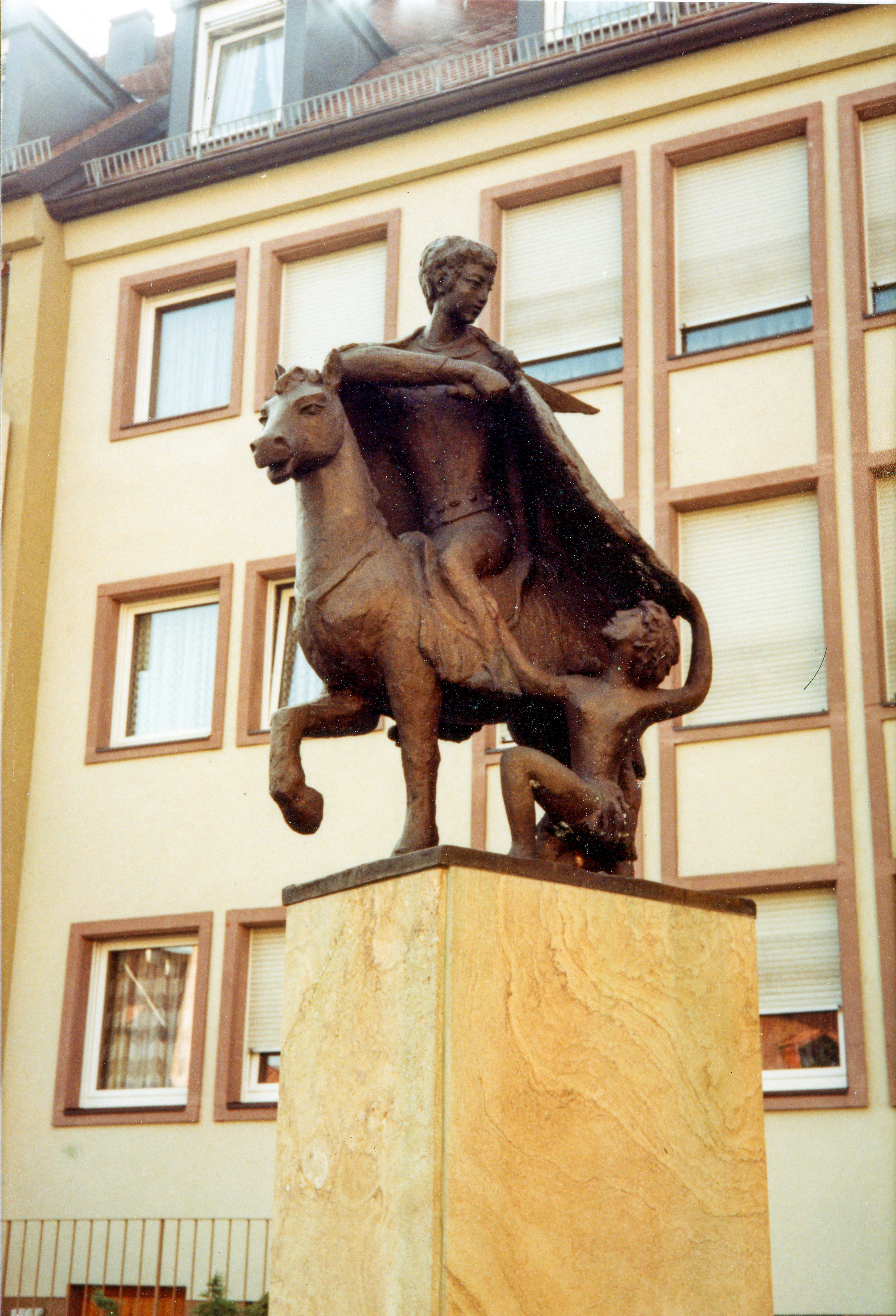 | Beschreibung | Freiplastik "Heiliger Martin", Bronze, Gudrun Kunstmann, 1982 (Lilienstraße 7, Innenhof) | ||