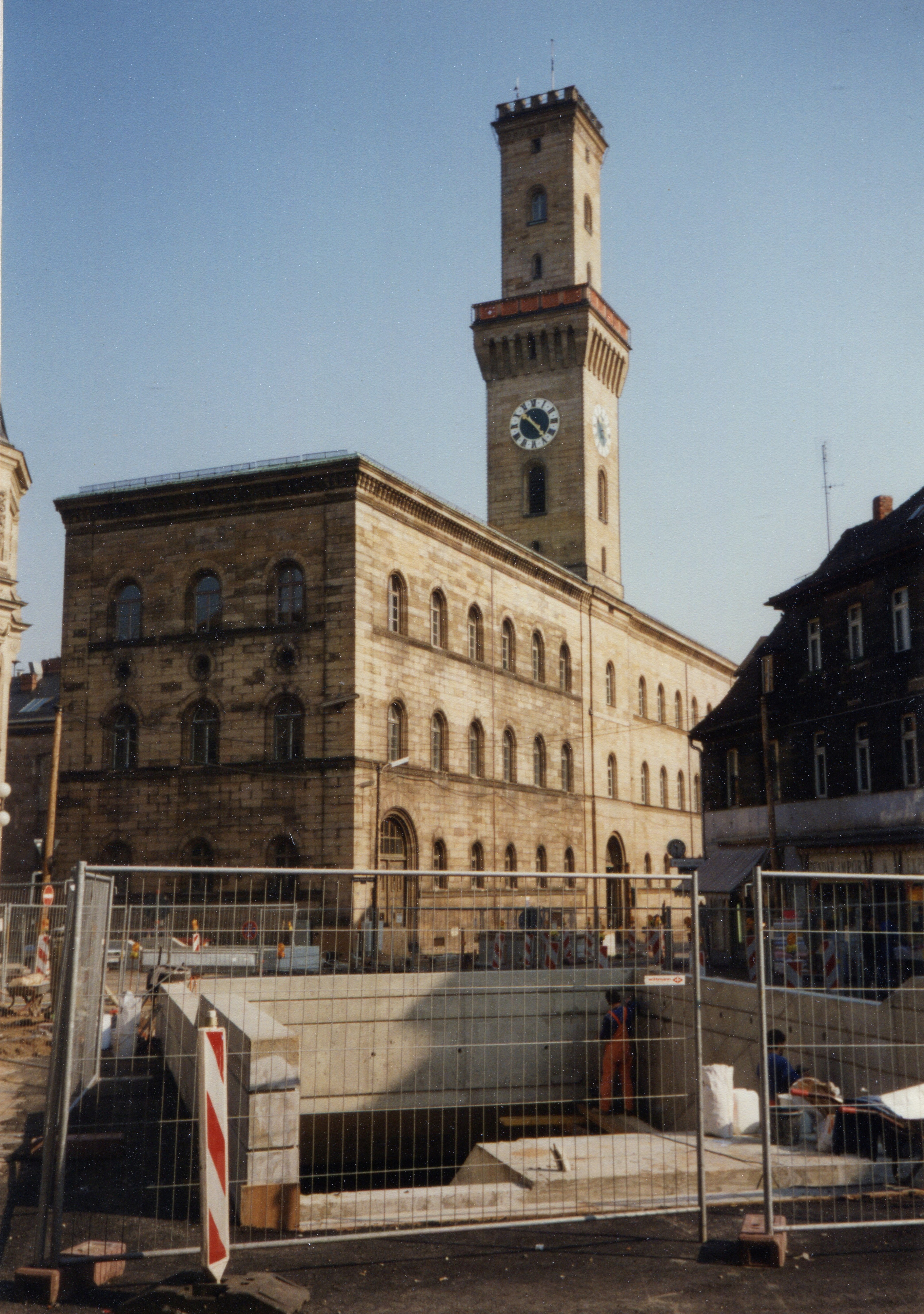 | Beschreibung | U-Bahn Baumaßnahmen U-Bahnhof Rathaus am Kohlenmarkt, im Hintergrund das Rathaus im April 1997 | ||