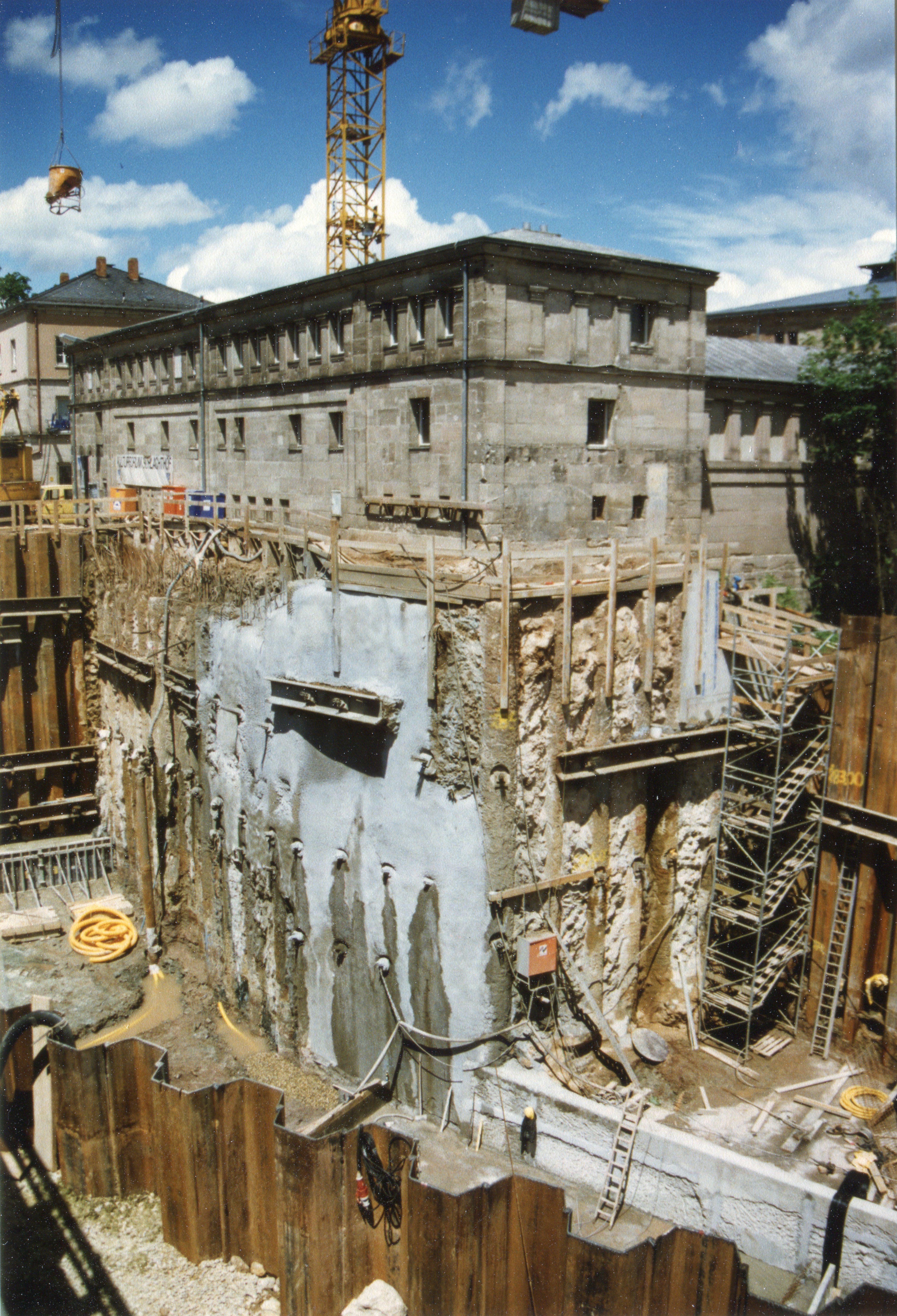 | Beschreibung | Spundwand Kasten in der Rednitz vor dem Kulturforum zur Vorbereitung zu den Tiefbauarbeiten zur Unterquerung des Flusses für die U-Bahn im Juni 1997 | ||