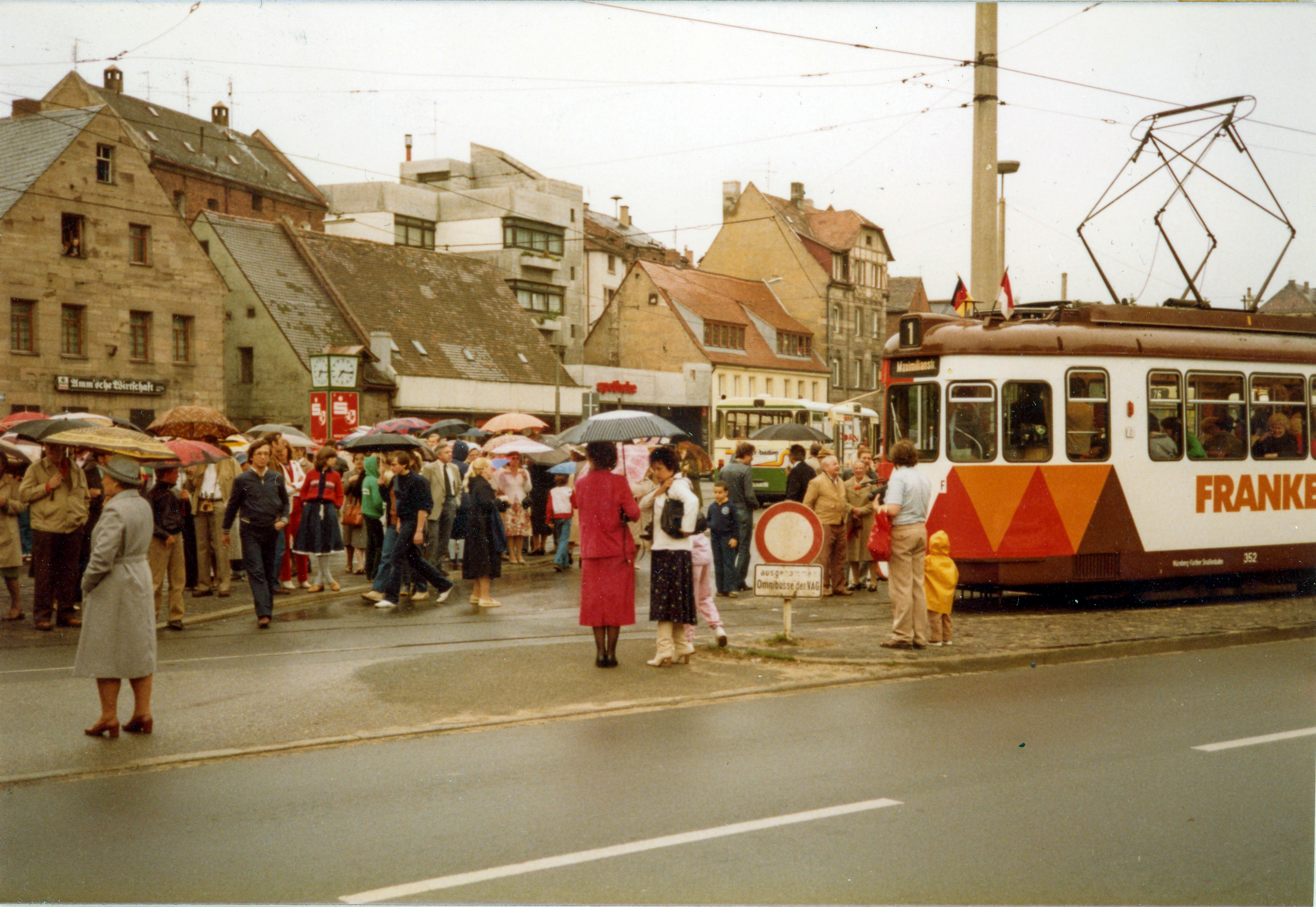 | Beschreibung | Die letzte Fahrt der Straßenbahn durch die Innenstadt, hier an der Billinganlage, Juni 1981 | ||