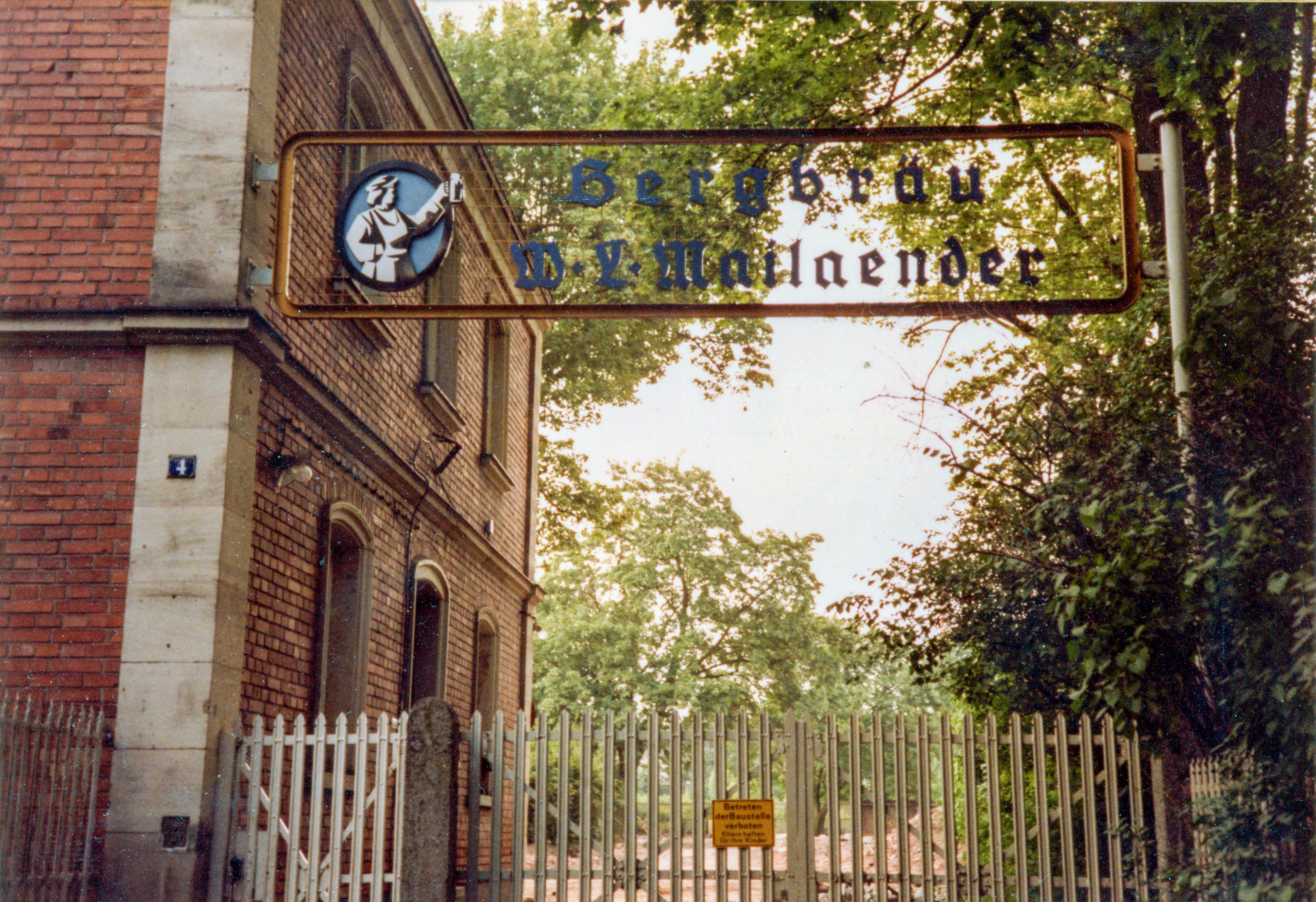 | Beschreibung | Unternehmensschild der ehem. Brauerei Bergbräu, März 1982 | ||