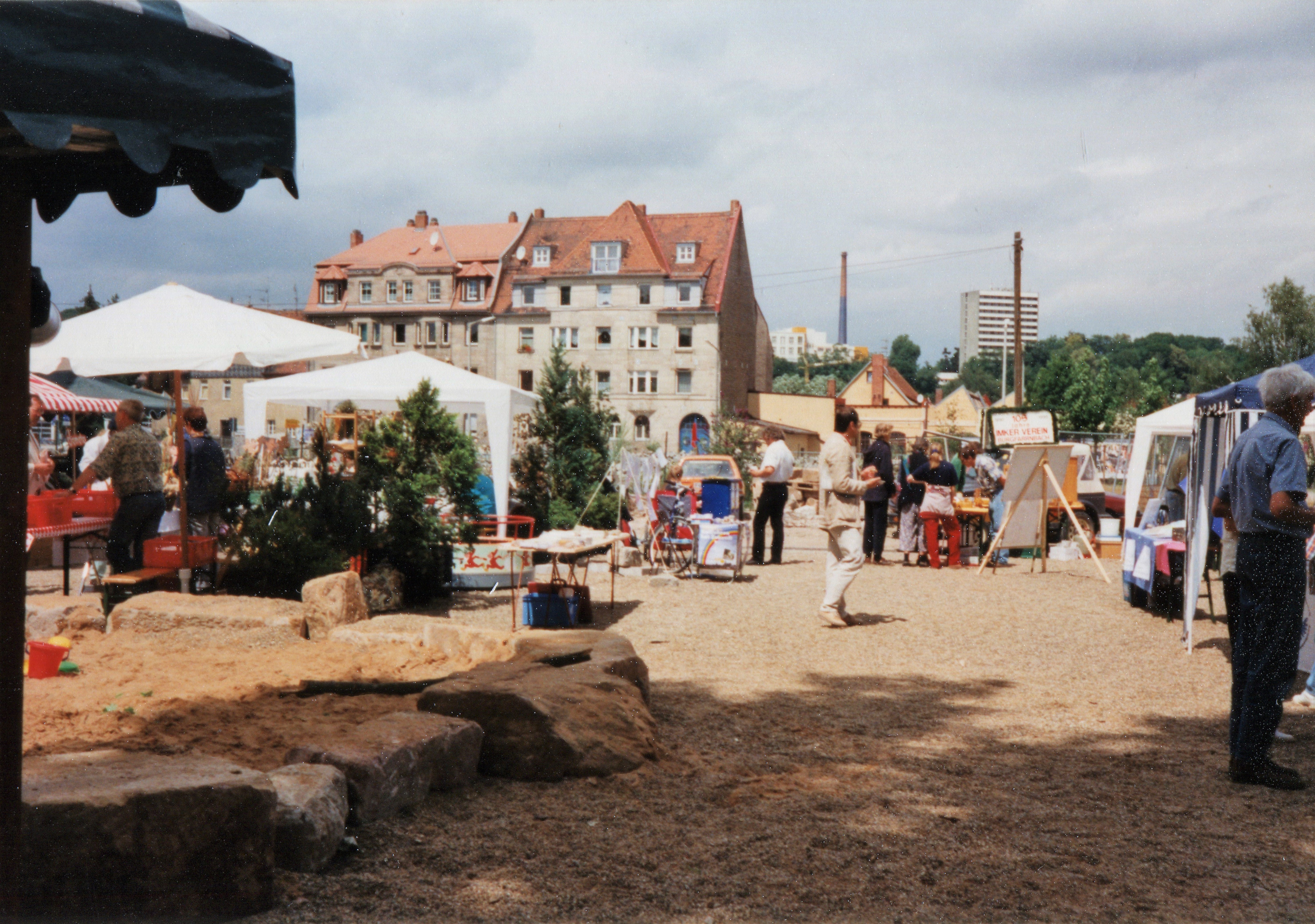 | Beschreibung | festliche Eröffnung vom Biergarten am Rednitzufer am Alter Schlachthof, Freigelände vor der Kapellenstraße. Im Hintergrund Gebäude Kapellenstraße 11 und 13 im Juli 1998 | ||