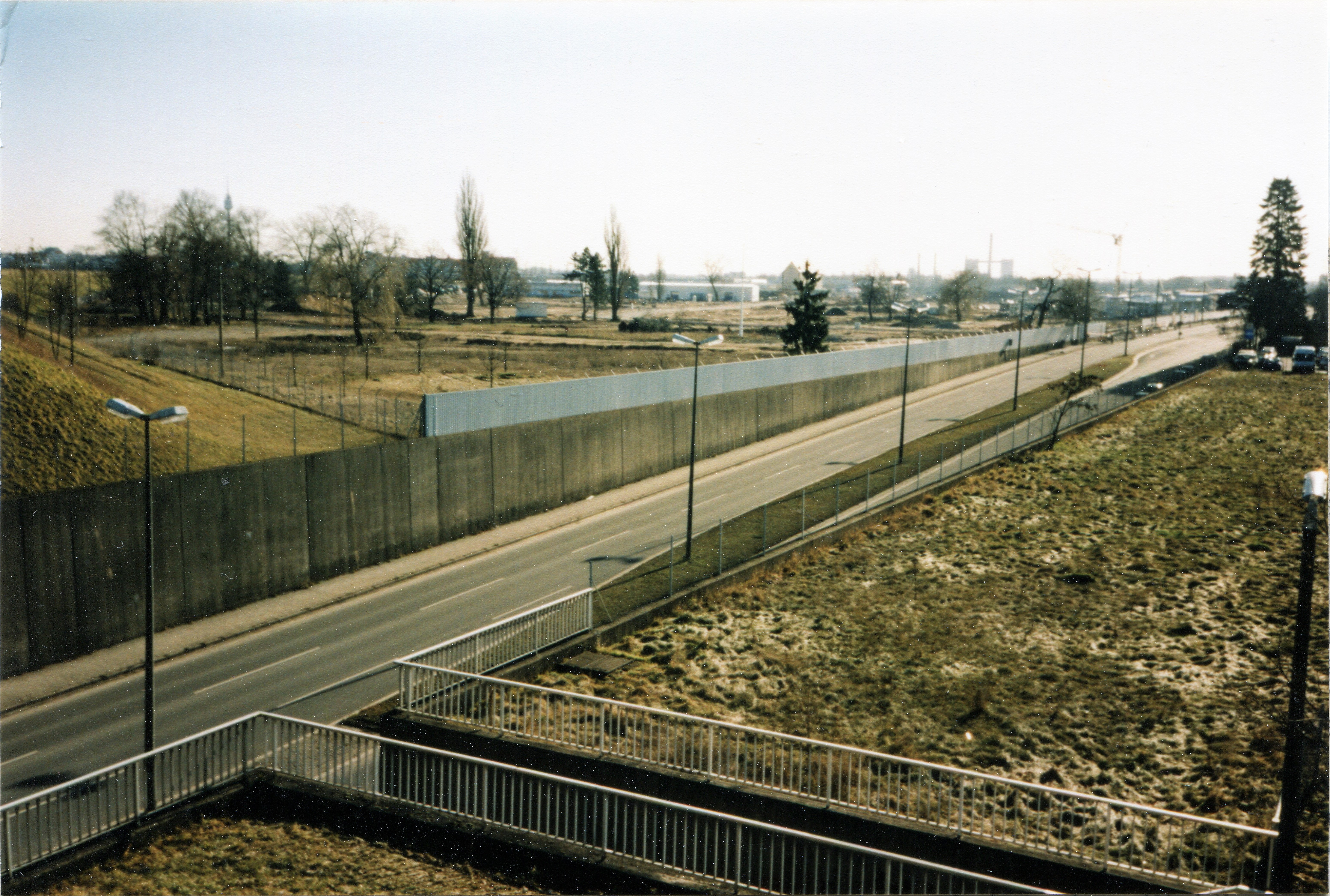 | Beschreibung | Blick von der Kanalbrücke Schwabacher Straße auf das abgeräumte ehem. Kasernengelände Johnson Barracks, heute Gewerbepark Süd; Aufnahme vom Januar 1998 – Der damals neue Leichtmetallzaun, der bis zur Kreuzung Fürth-Süd ging, wurde postwendend verschrottet, genau wie das neue gasbetriebene Blockkraftwerk der Ex-Kaserne; in Bildmitte steht heute der Complex-Gewerbehof. | ||