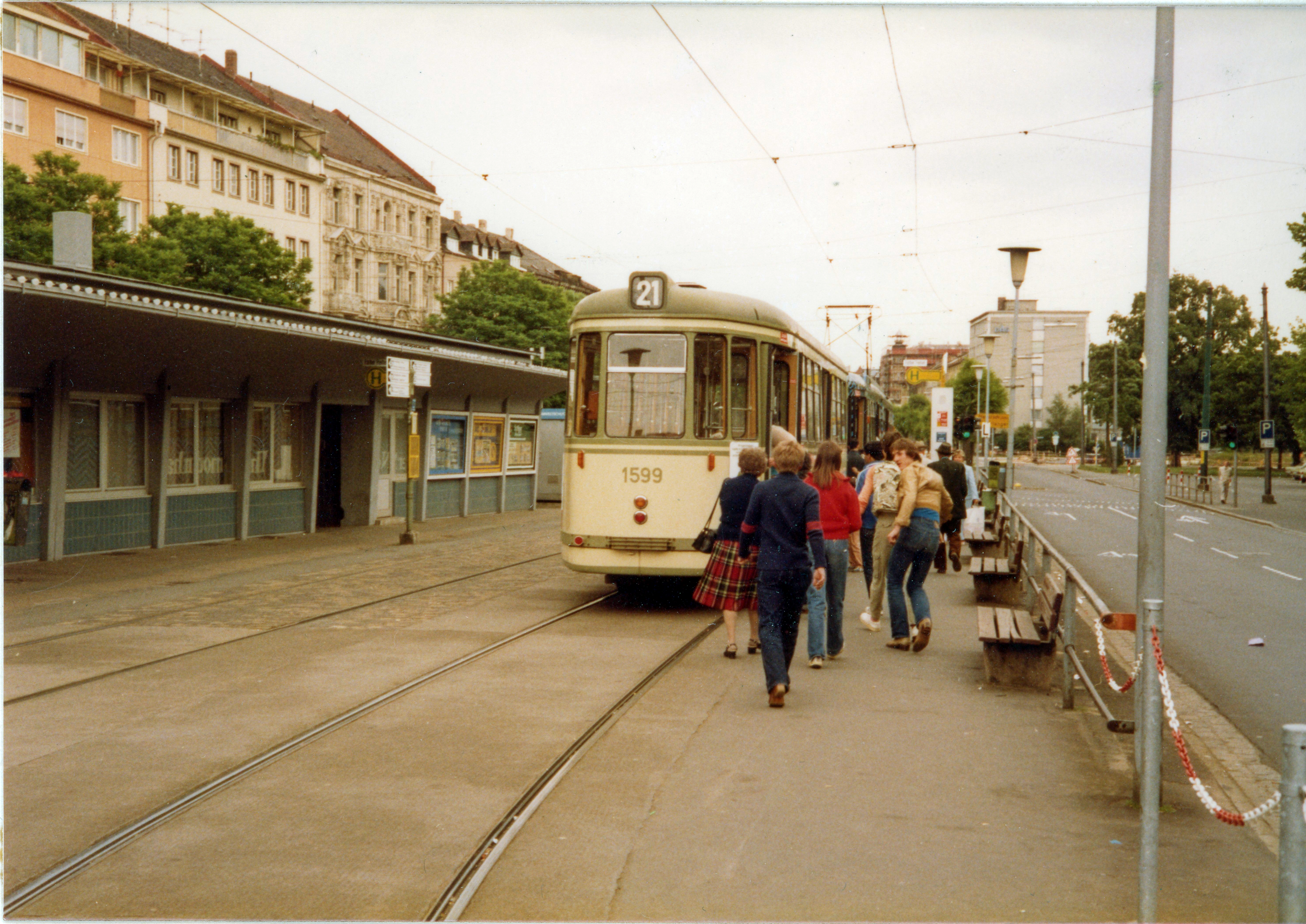 | Beschreibung | Die letzte Fahrt der Straßenbahn durch die Innenstadt, hier an der Fürther Freiheit, Juni 1981 | ||