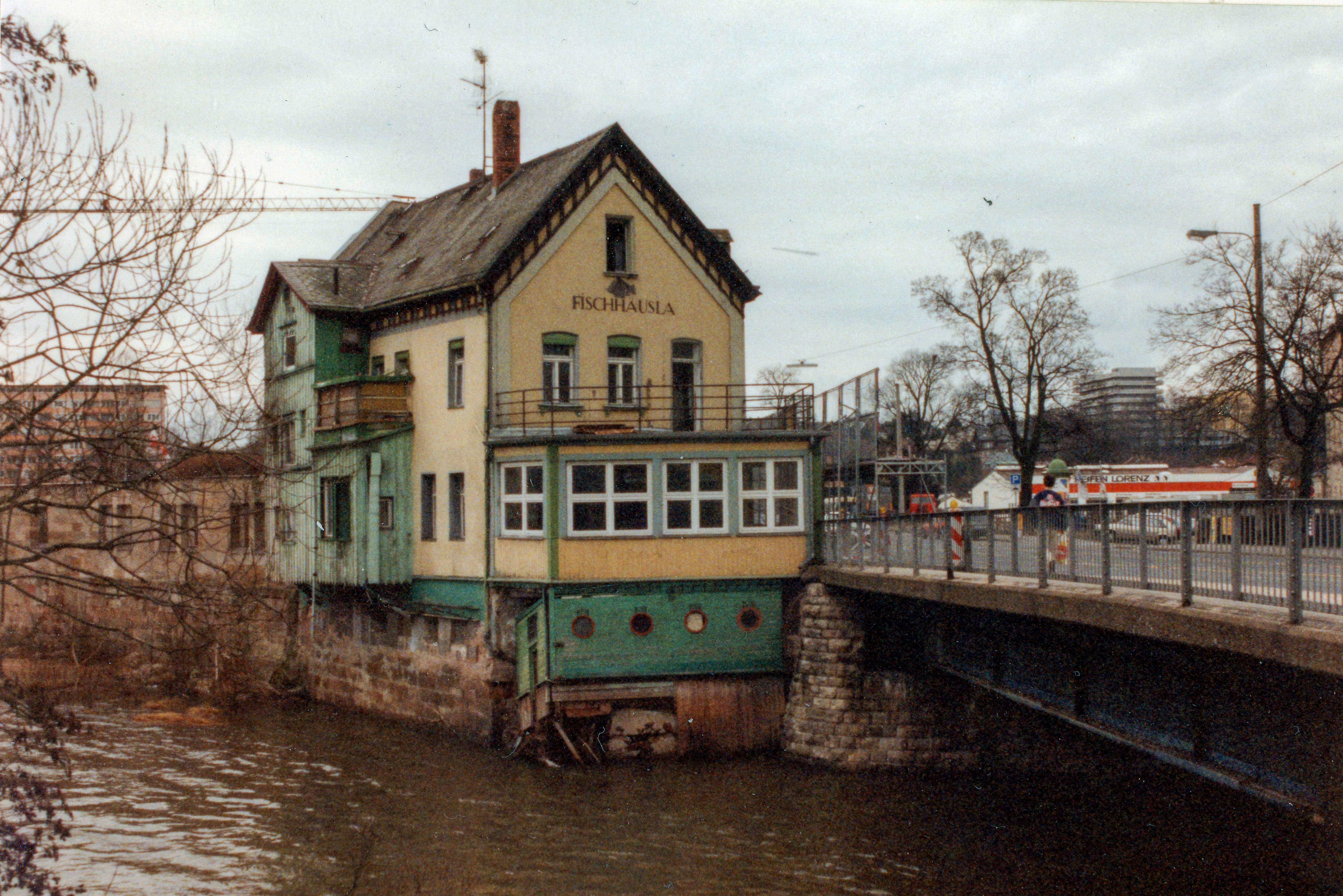 | Beschreibung | Abrissarbeiten an der ehem. Gaststätte Fischhäusla, Nov. 1994 | ||