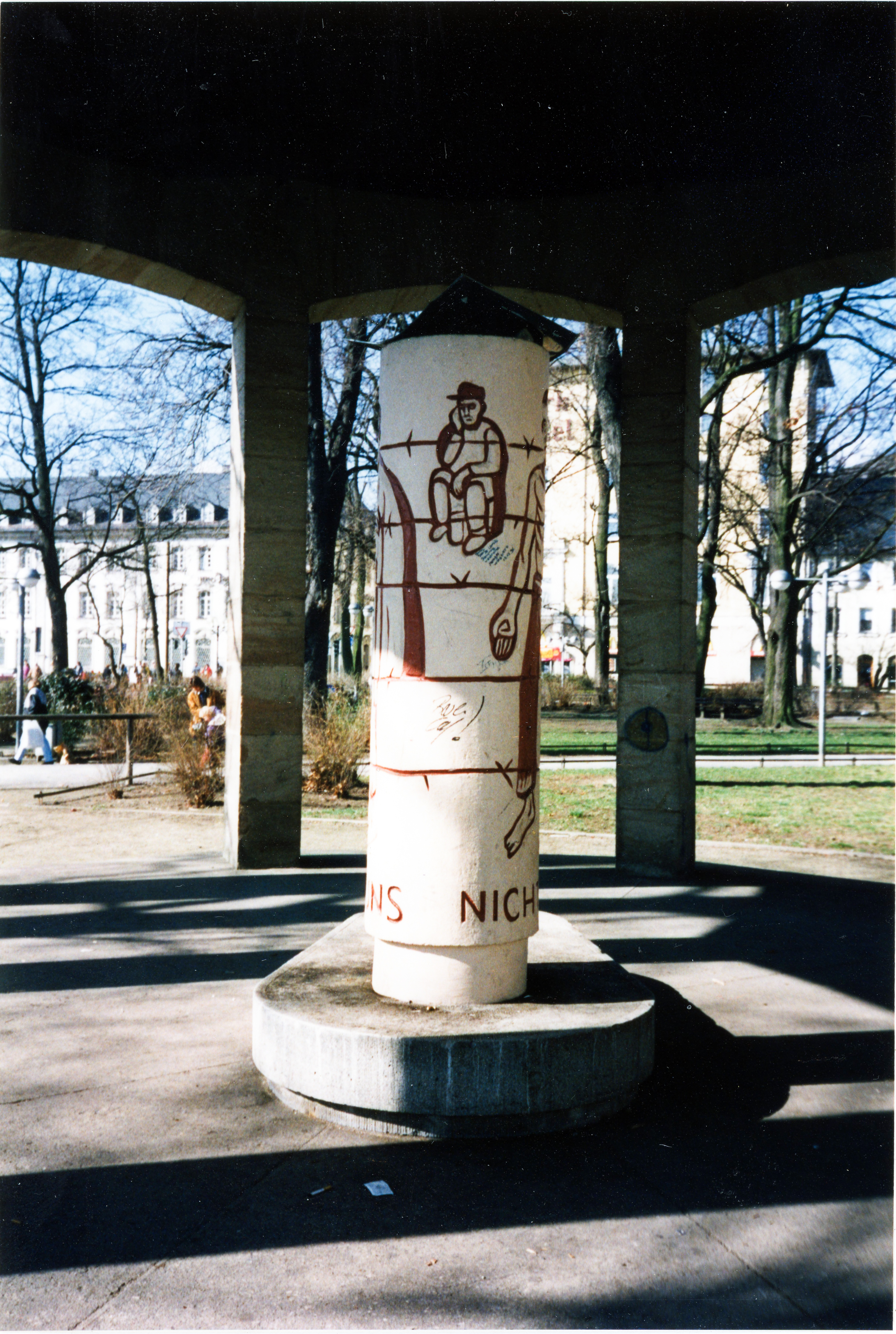 | Beschreibung | Das Kriegsgefangenendenkmal vom Fürther Künstler Karl Dörfuss noch in der Adenaueranlage, Feb. 1998 | ||