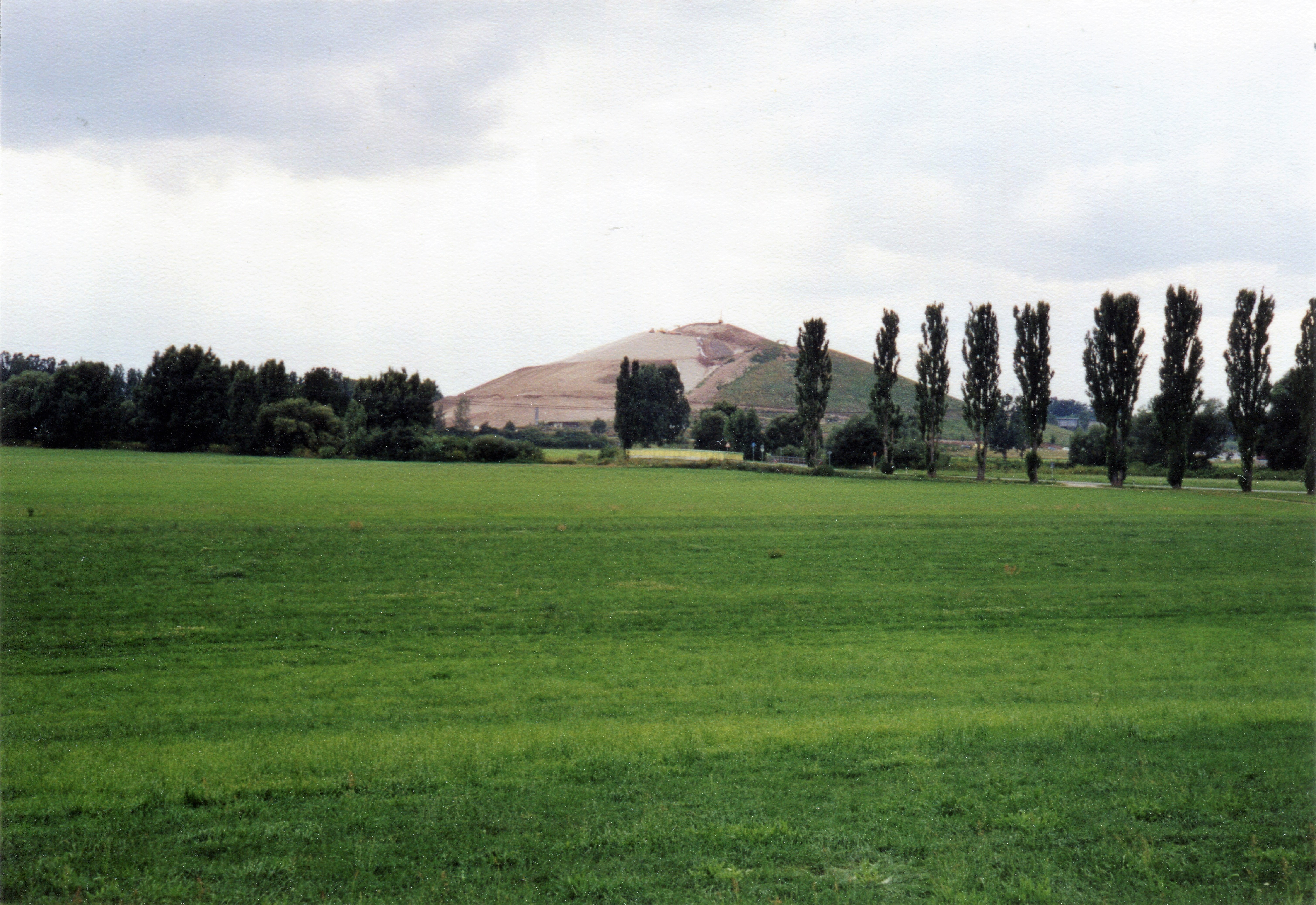 | Beschreibung | Blick über die Stadelner Panzerstraße zur ehem. Mülldeponie mit Abschluss- und Abdichtarbeiten mit Textilflies und 2,5 m dicken Langenzenner Lehm im Juli 1999 | ||