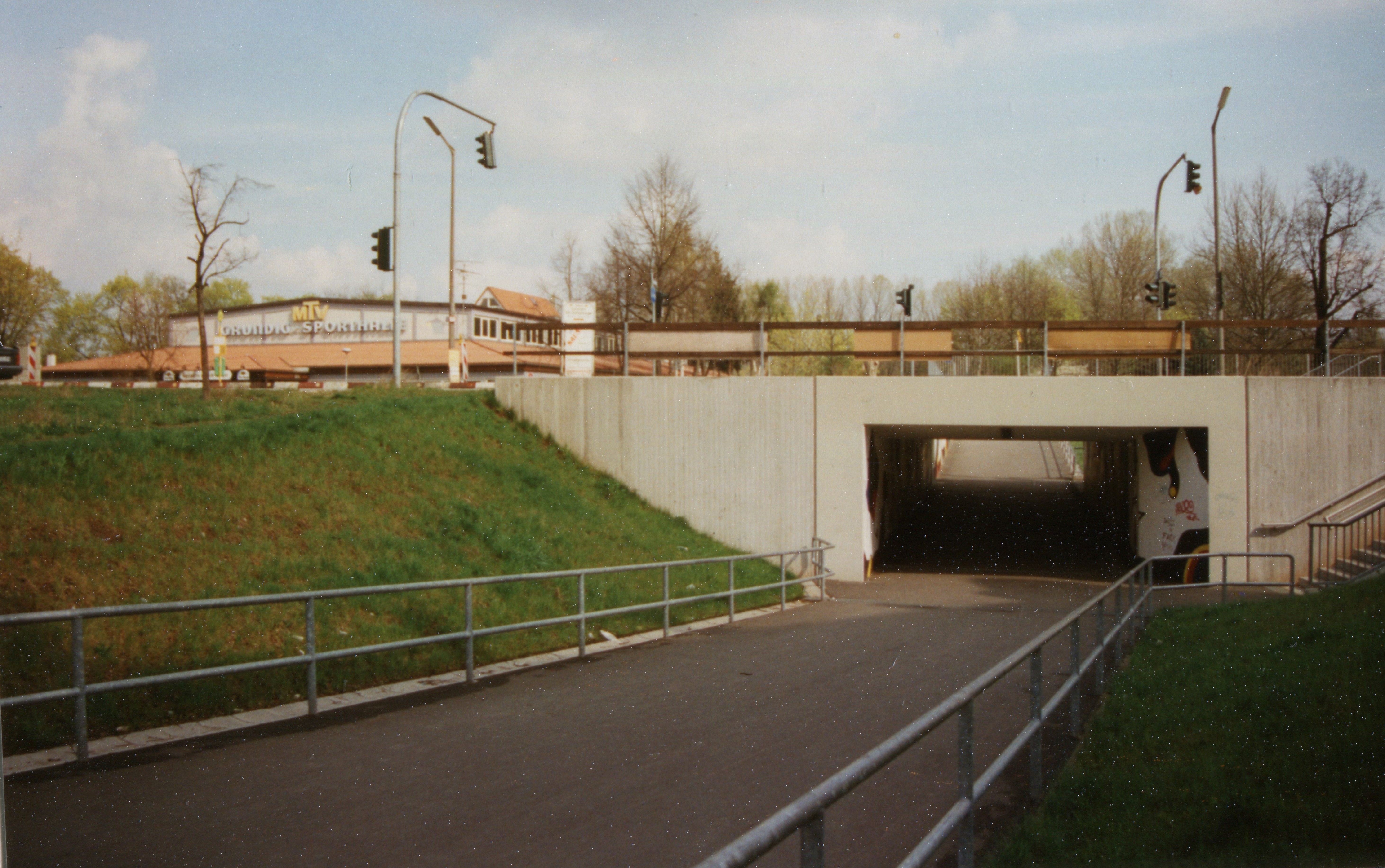| Beschreibung | Die Unterführung Schießplatz unter der Kapellenstraße, im Hintergrund die MTV Grundig-Halle, Apr. 1998 | ||