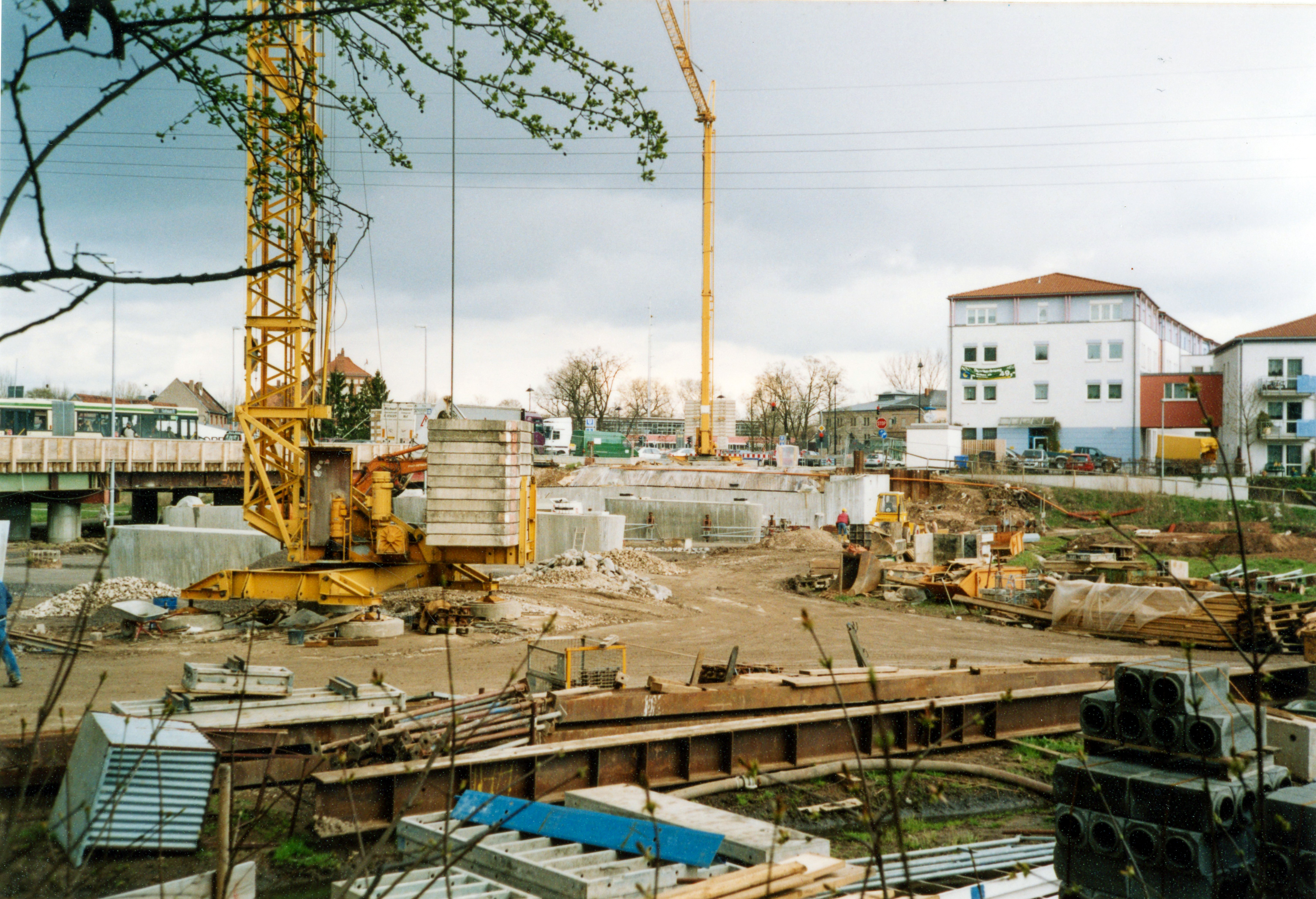 | Dateiinfo (Bild-Unterschrift und Info-Box, automatisch erstellt) | Bau der Flutbrücke, Juli 2003 Lizenz: CC BY-SA 4.0 | ||
