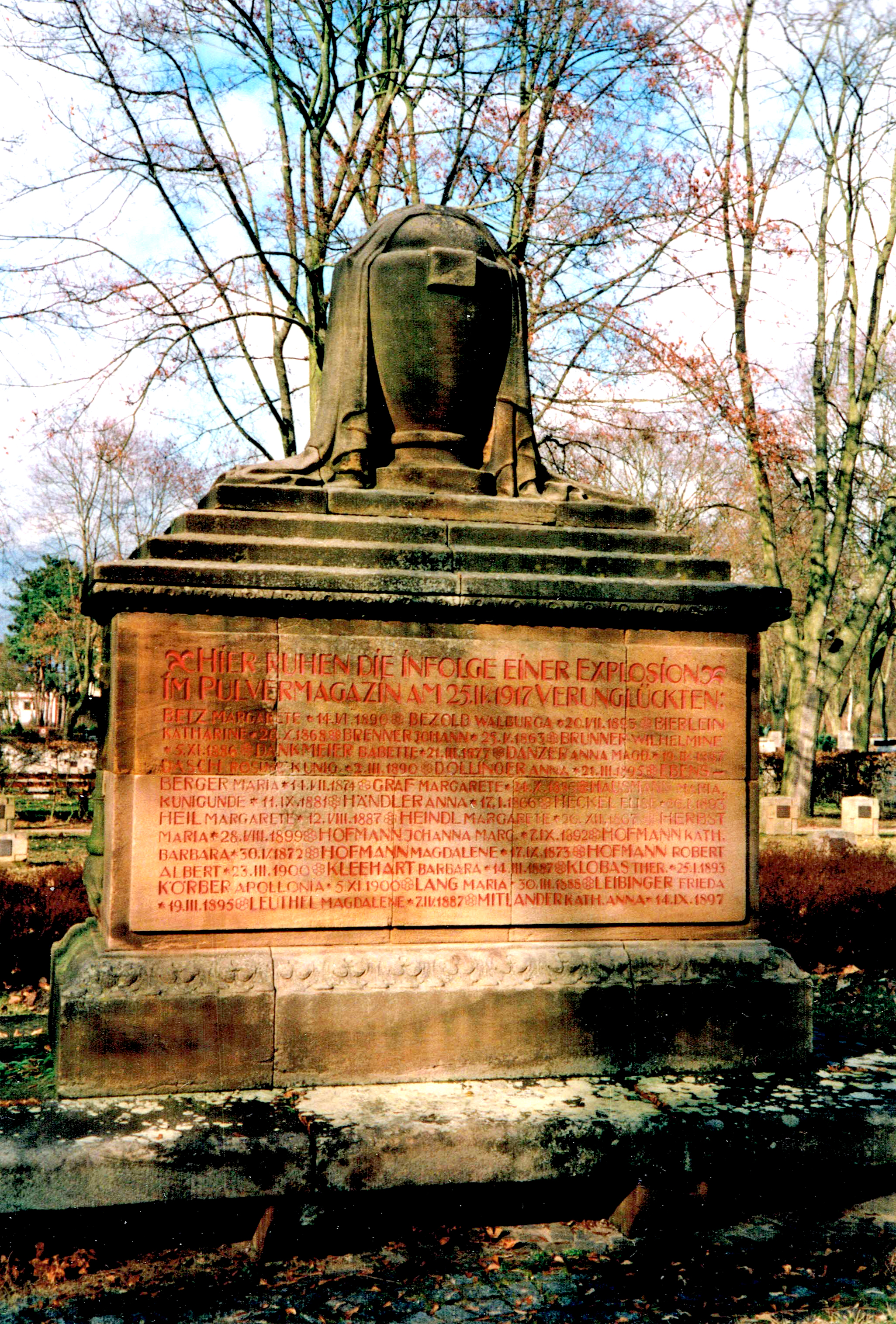 | Beschreibung | Denkmal für die Brandopfer im Pulvermagazin auf dem Ehrengrabfeld des Hauptfriedhofs, Februar 2001 | ||