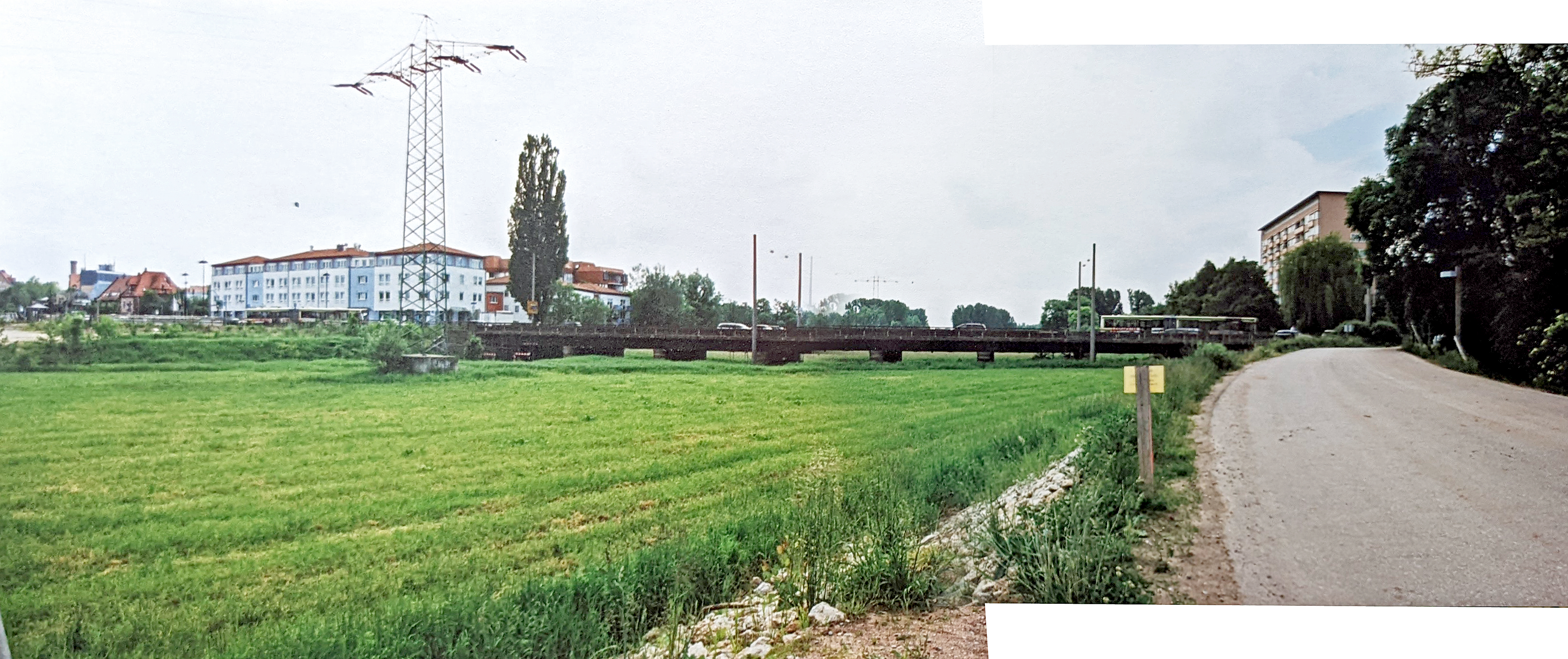 | Beschreibung | Blick von der U-Bahn-Baustelle im Wiesengrund auf die Flutbrücke und das Hotel am Forum, April 2002 | ||