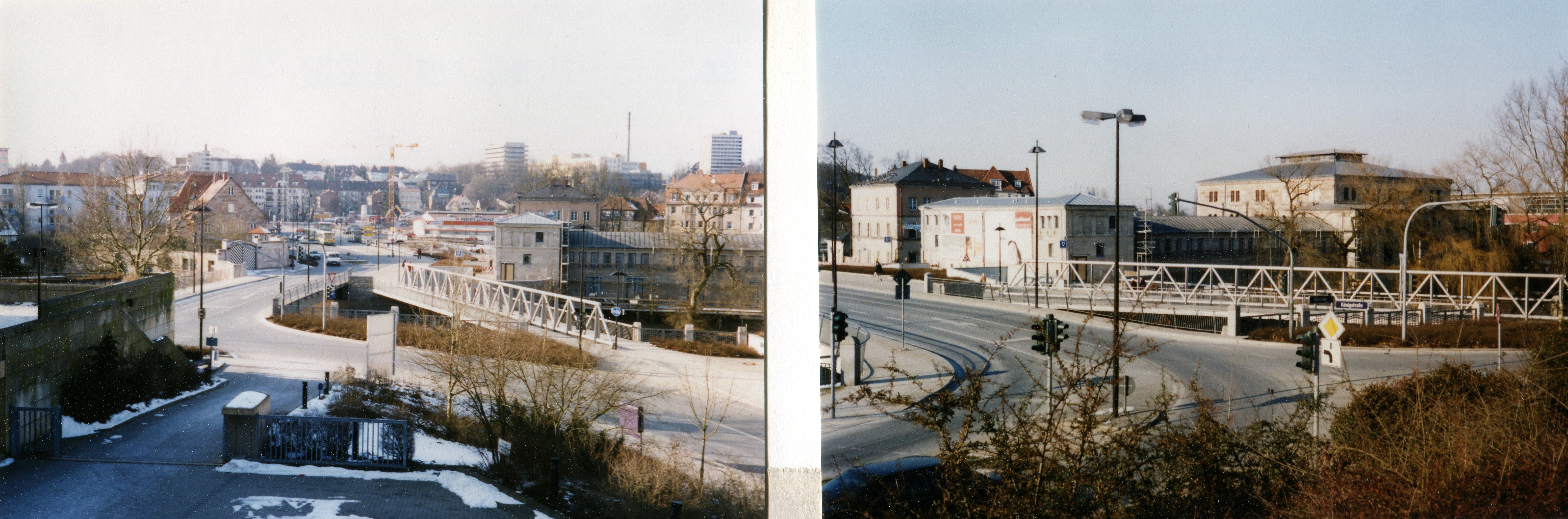 | Beschreibung | Blick von der Stadthalle auf die Maxbrücke, Hans-Segitz-Steg und Kulturforum im Februar 2003 | ||