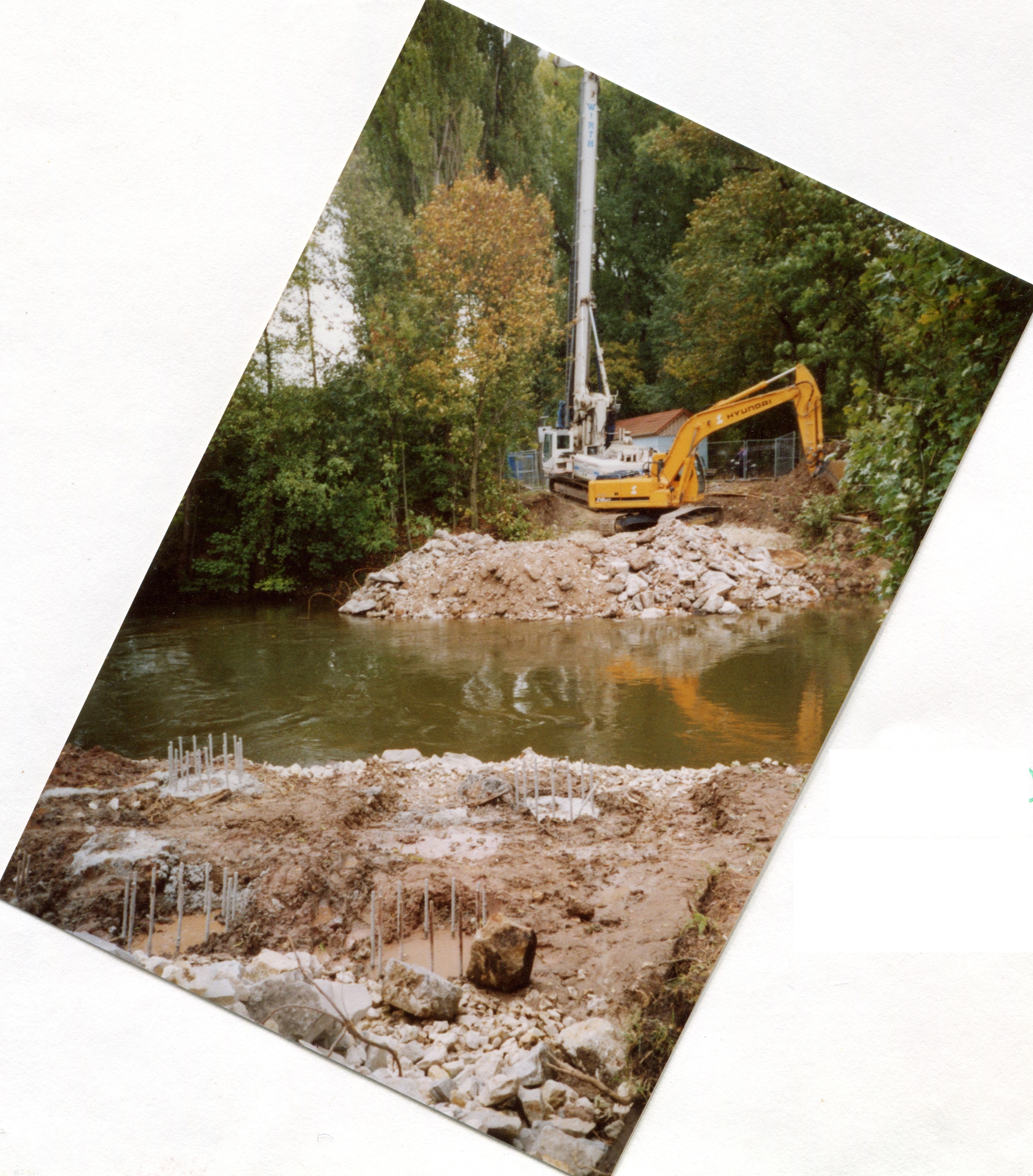 | Beschreibung | Herstellung der Stahlbeton-Bohrpfähle für die Widerlagergründung des neuen Käppnerstegs, Oktober 2004 | ||