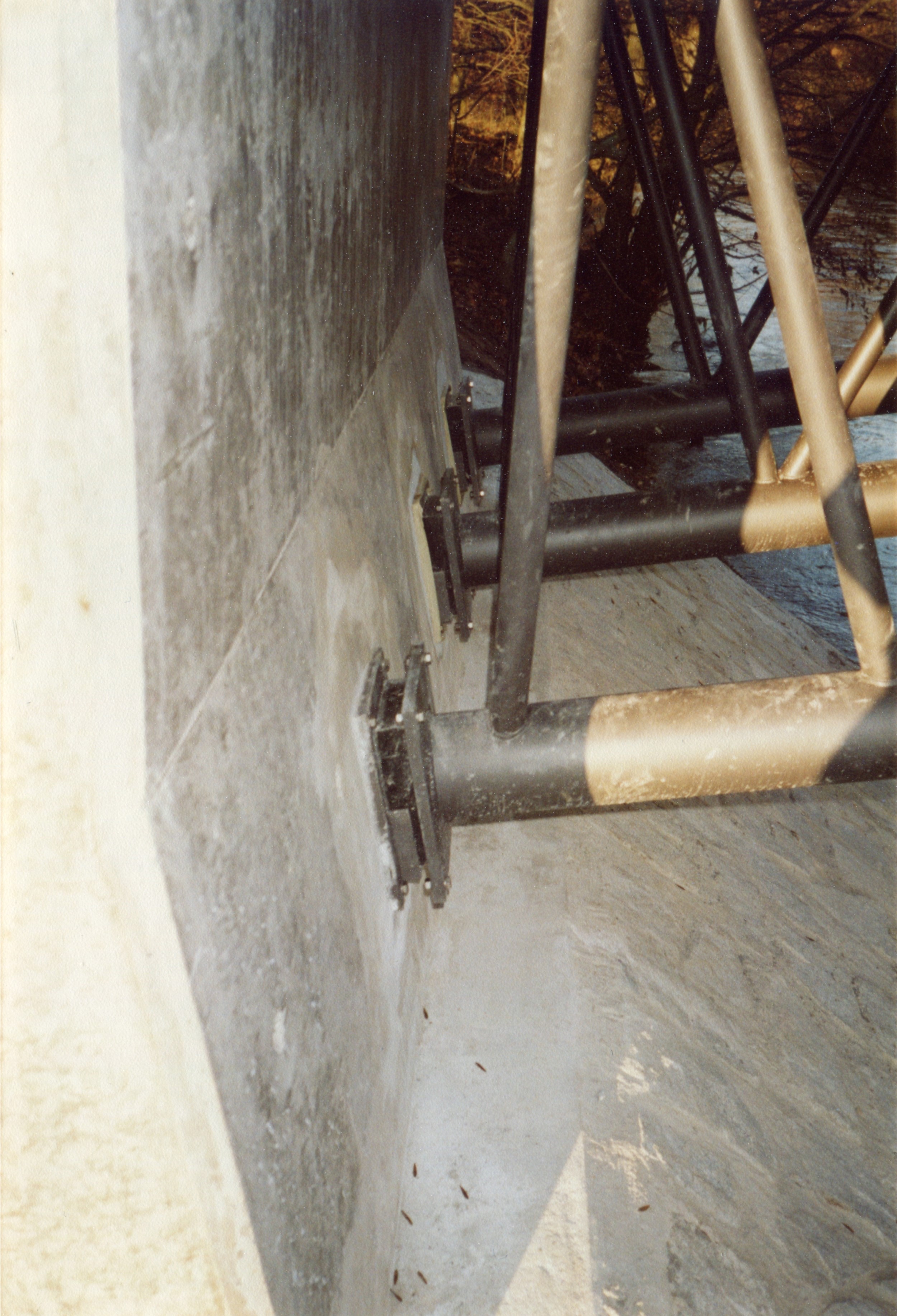 | Beschreibung | Auflager des Brückenüberbaus (Stahlkonstruktion) am Widerlager des neuen Käppnerstegs, Dezember 2004 | ||