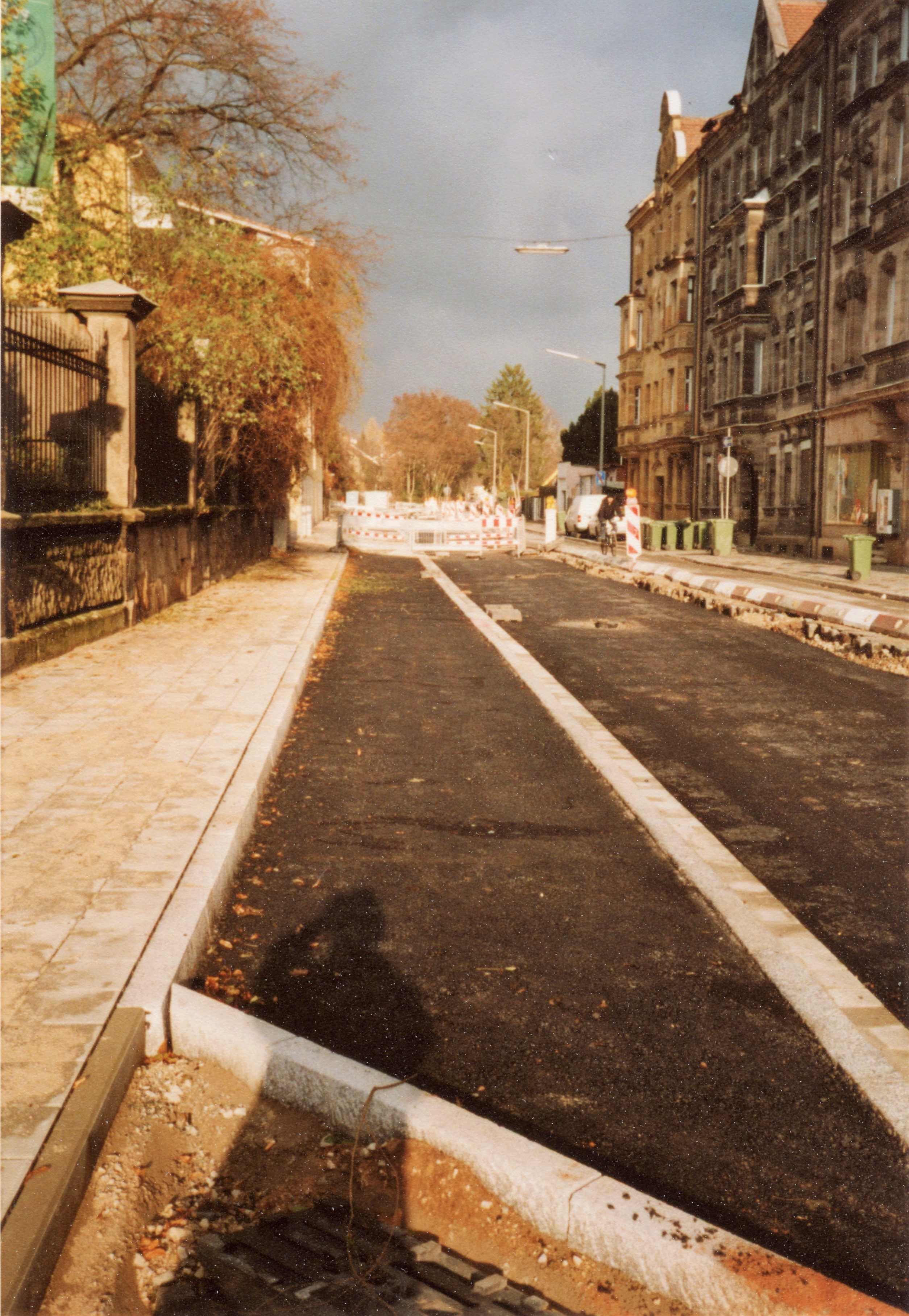 | Beschreibung | neuer Straßenbelag nach den Kanalarbeiten in der Vacher Straße Richtung Norden. Links Metallgitterzaun der Gaststätte Zum Schlössla und rechts Häuserzeile Vacher Straße 10, Vacher Straße 12 und Vacher Straße 14 im November 2004 | ||