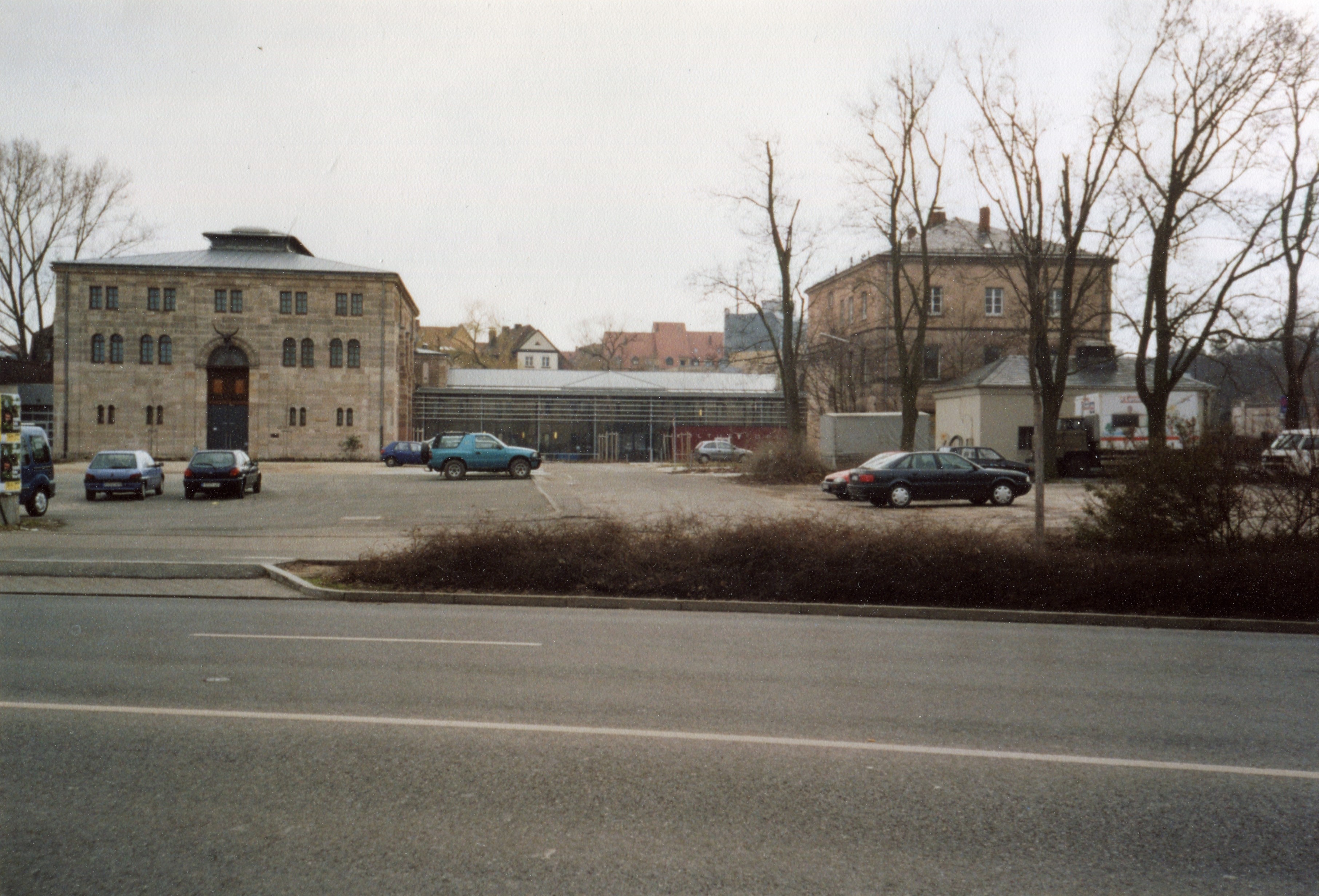 | Beschreibung | Blick auf die ehem. große Rinderschlachthalle, dem heutigen Kulturforum vor dem Bau des ehem. Elektromarktes Saturn, März 2005 | ||