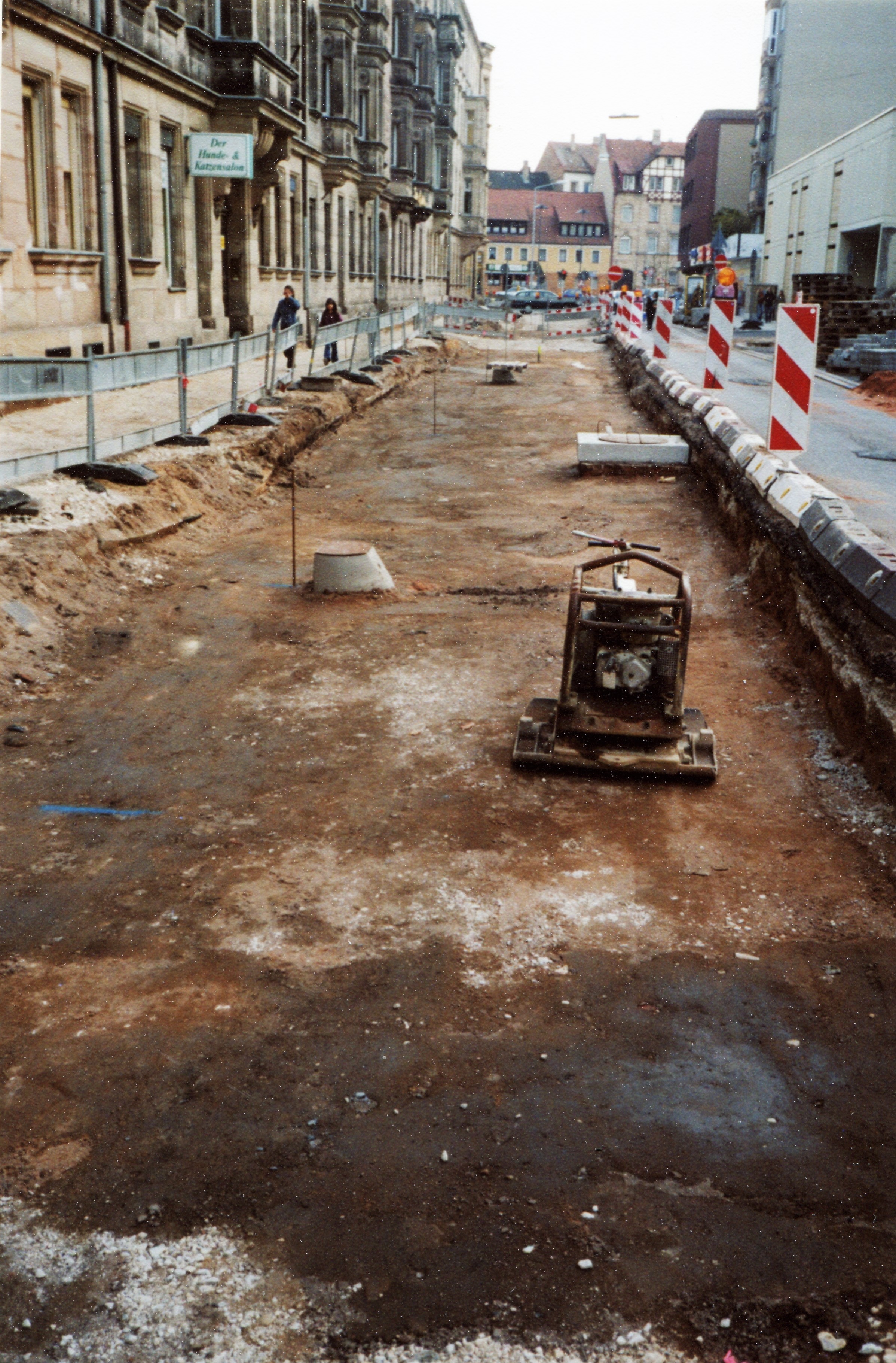 | Beschreibung | Straßenerneuerung nach Kanalarbeiten in der Vacher Straße Richtung Billinganlage im März 2005 | ||