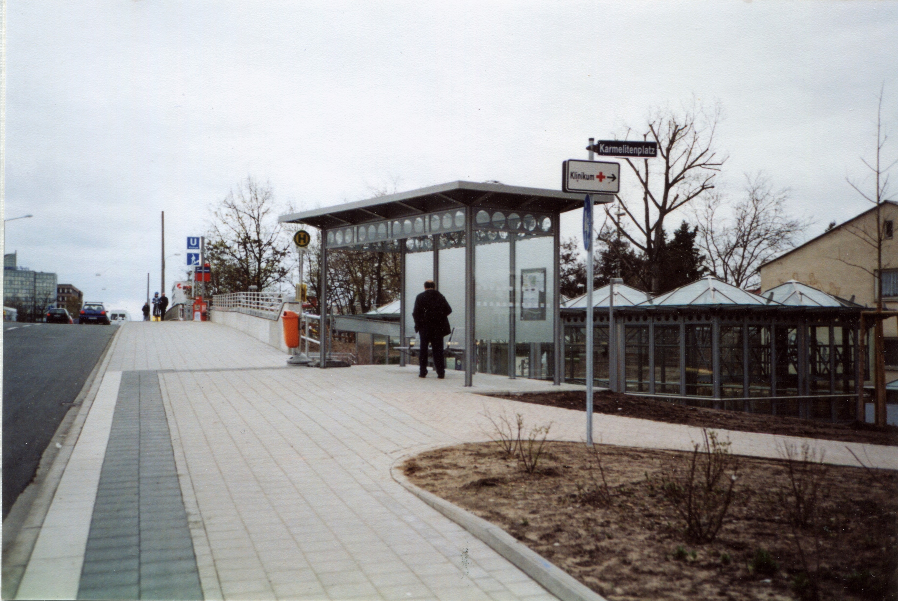 | Beschreibung | Würzburger Straßenbrücke mit Bushaltestelle dahinter der Zugang zum U-Bahnhof Klinikum am Karmelitenplatz im April 2005 | ||