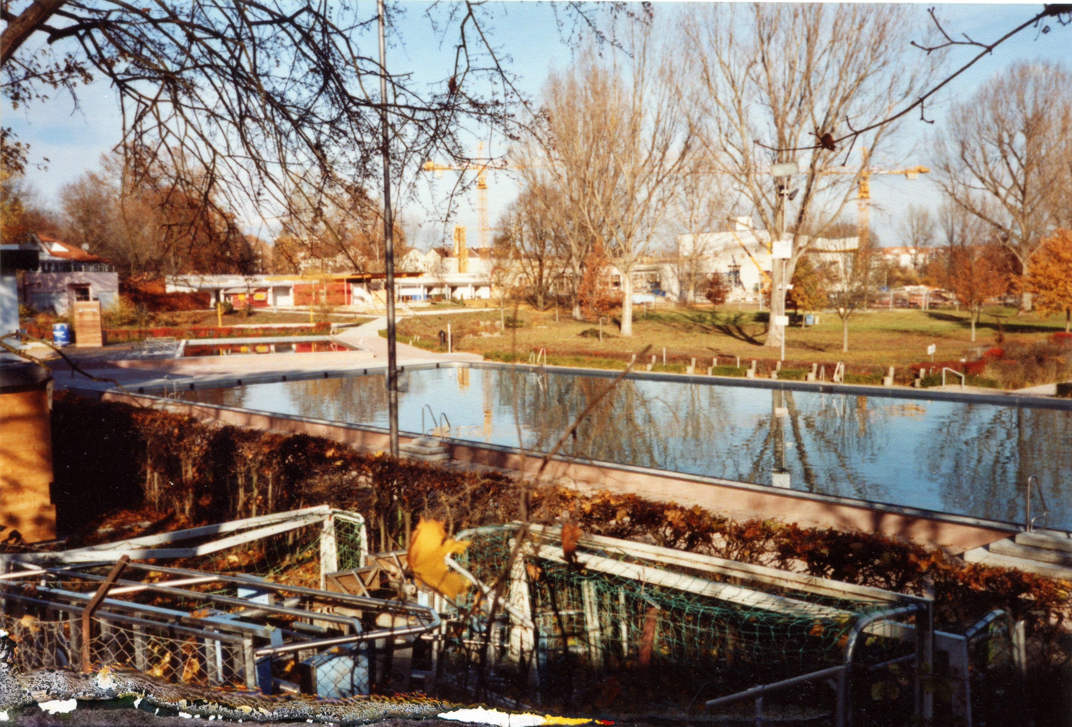 | Beschreibung | Das 50-Meter-Schwimmbecken im Sommerbad Fürth, im Hintergrund Baustelle "Fürthermare", September 2006 | ||