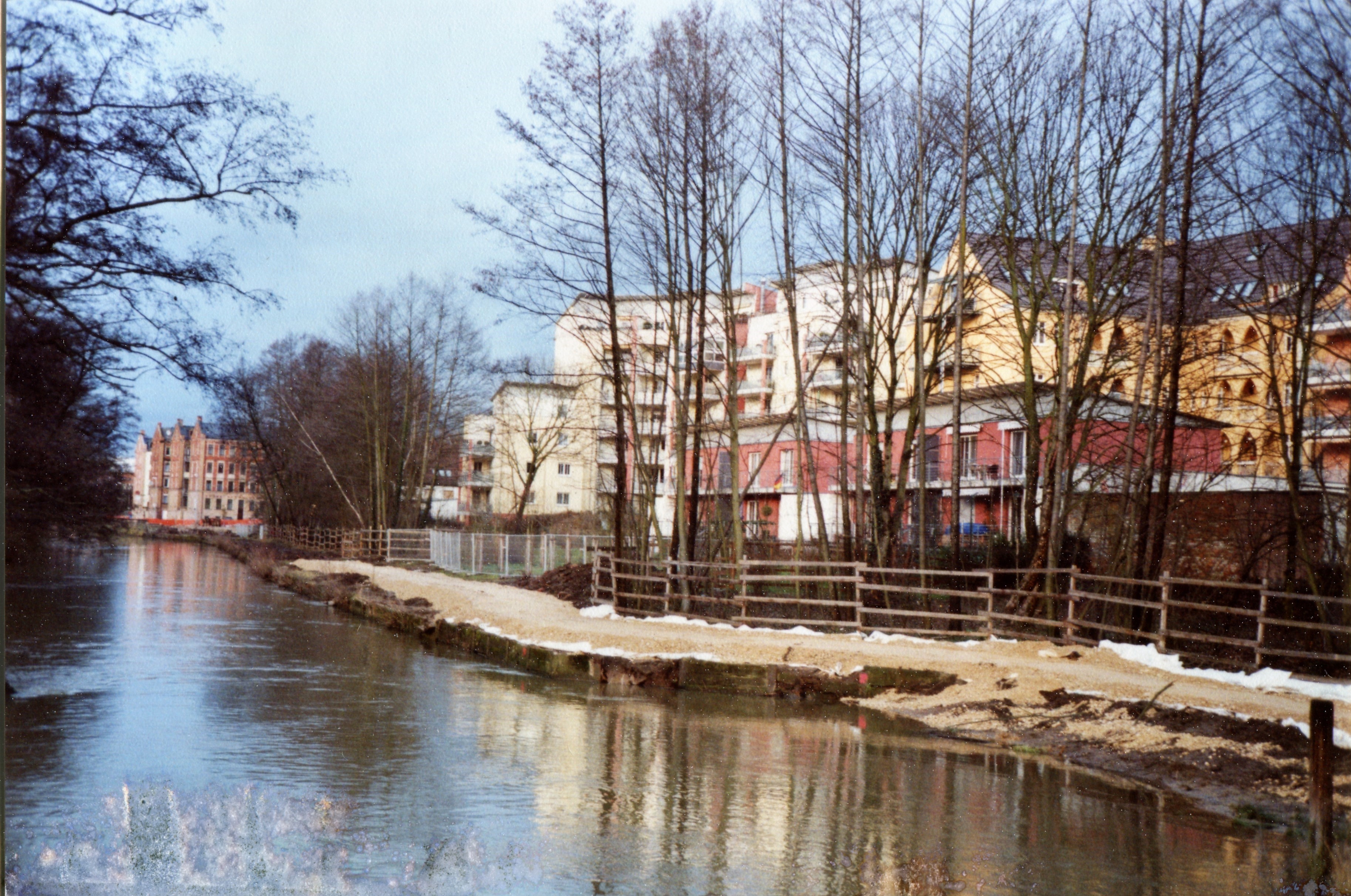 | Beschreibung | Baumaßnahmen für die neue Uferpromenade an der Rednitz mit Häuserzeile an der Badstraße. Aufnahme vom Februar 2007 | ||