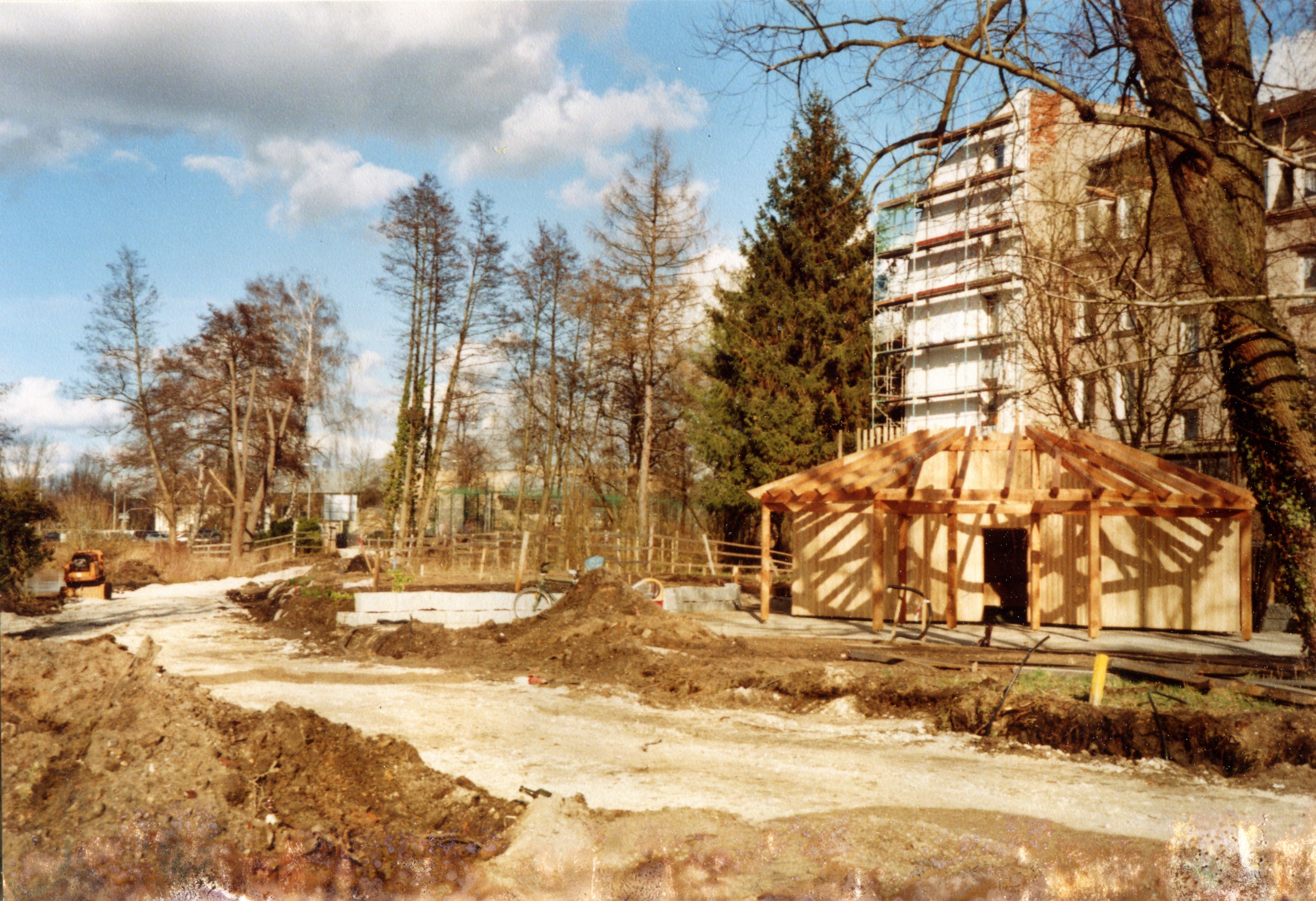 | Beschreibung | Bau des Pavillons in den Interkulturellen Gärten an der Uferpromenade, Februar 2007 | ||
