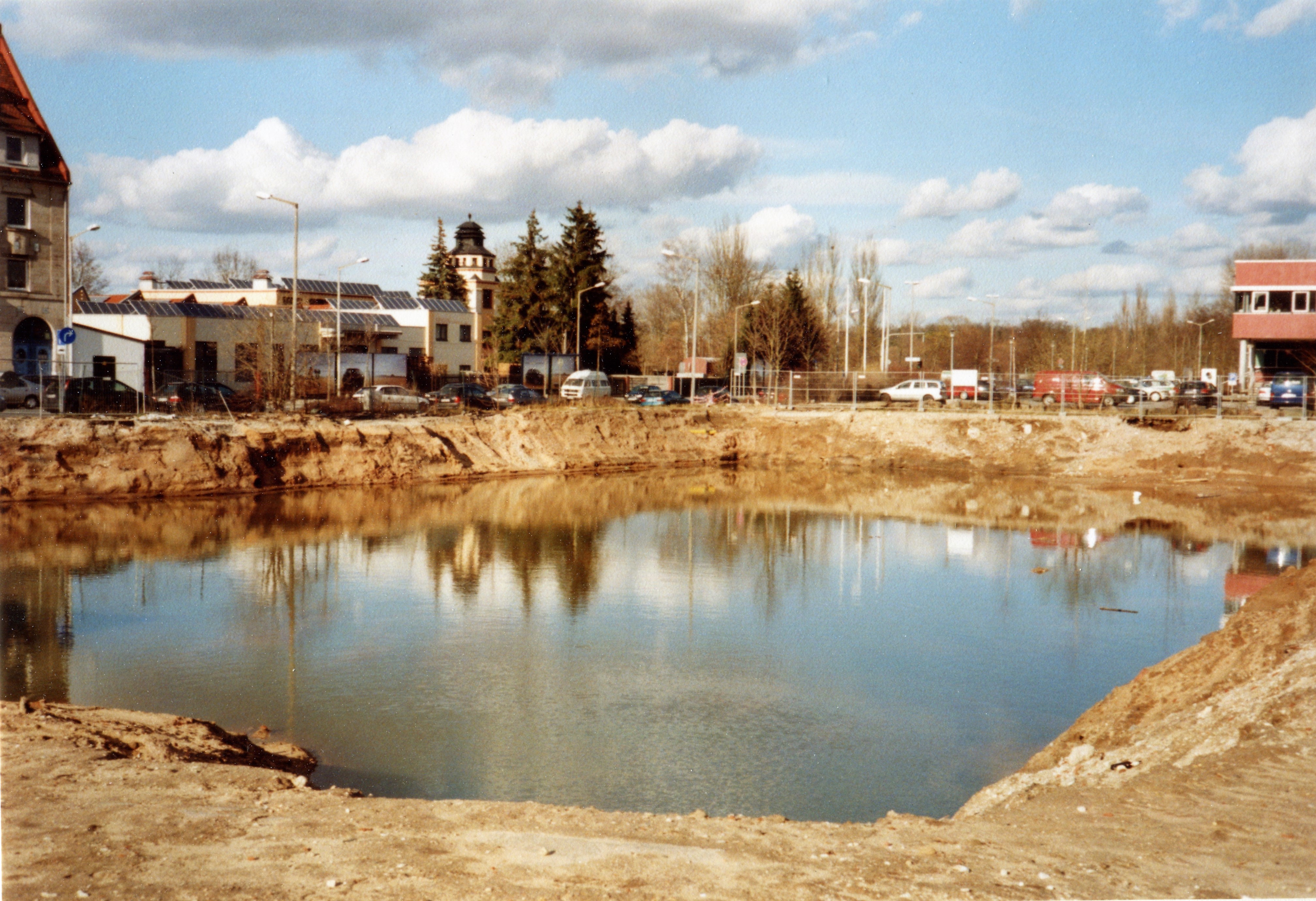 | Beschreibung | Mit Grundwasser vollgelaufene Baugrube für Bauvorhaben Elektromarkt Saturn, Ort des ehem. Sauweihers, der sich hier als Teil eines längst zugeschütteten Altarms der Rednitz befand, Februar 2007 | ||