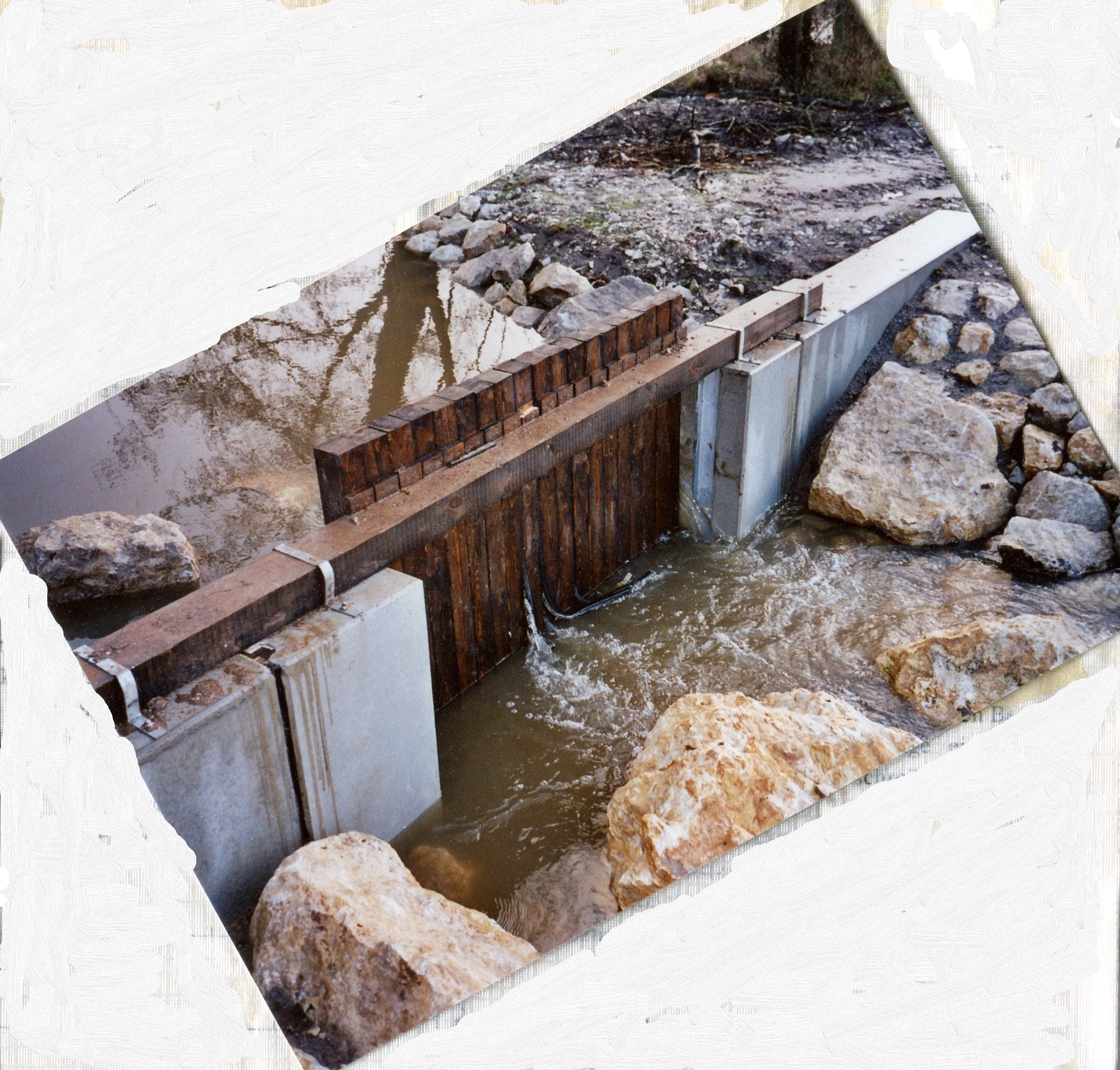 | Beschreibung | Auslassbauwerk mit prov. Stautafel an der Rednitz für den neuen Rednitzgraben, Dezember 2007 | ||
