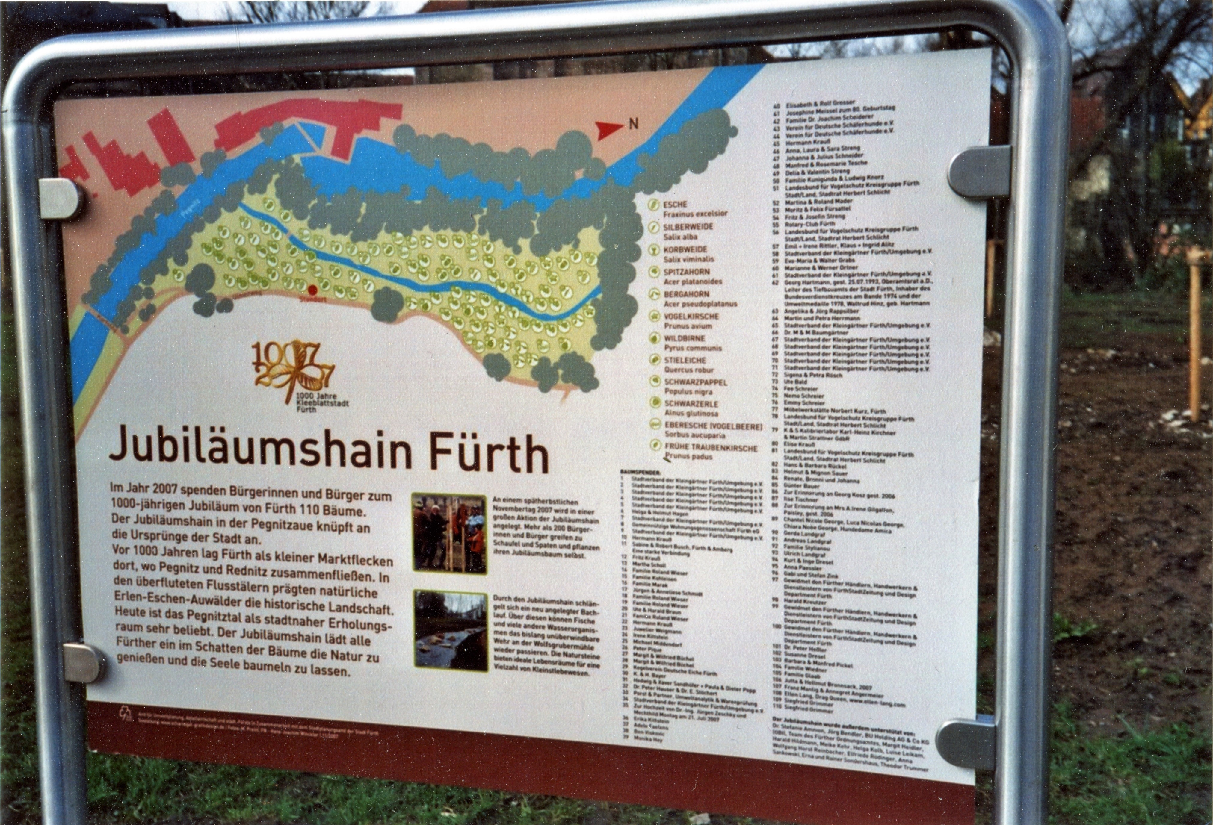 | Dateiinfo (Bild-Unterschrift und Info-Box, automatisch erstellt) | Hinweis Tafeln am Jubiläumshain beim Ulmenweg im März 2008 Urheber: Klaus-Peter Schaack<br><br>Lizenz: CC BY-SA 3.0 | ||