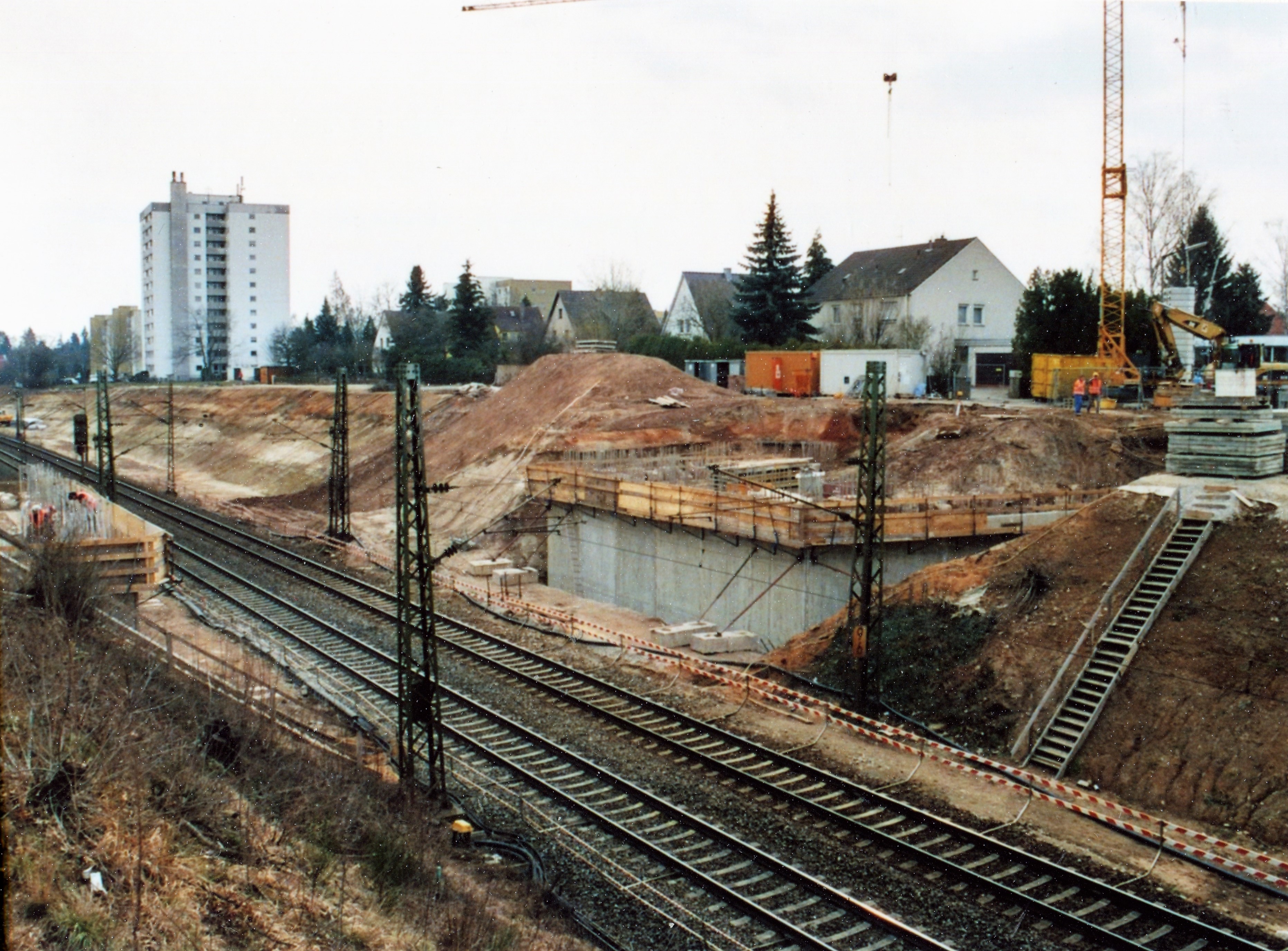 | Beschreibung | S-Bahn Bau von der Hardbrücke aus gesehen Richtung Süden; im Hintergrund Hochhaus Coseler Straße 33 im März 2010 | ||