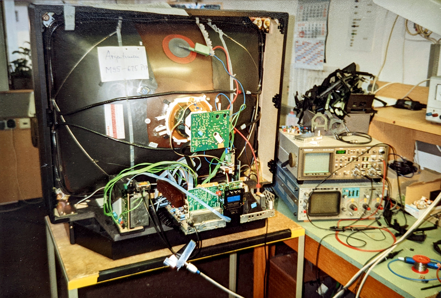 | Dateiinfo (Bild-Unterschrift und Info-Box, automatisch erstellt) | TV-Werkstatt in der Firma Grundig, Januar 1994 Urheber: Klaus-Peter Schaack<br><br>Lizenz: CC BY-SA 3.0 | ||