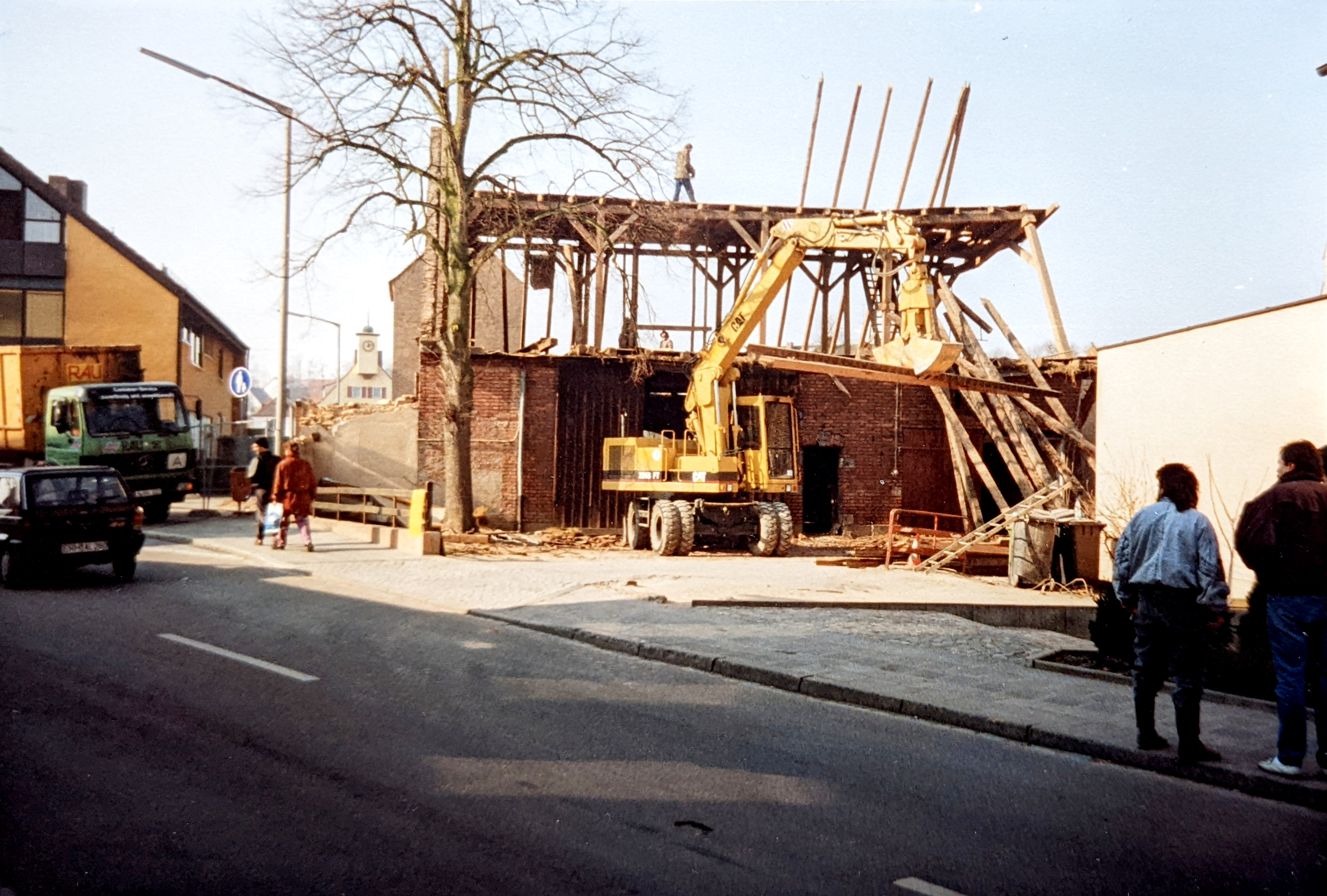 | Beschreibung | Abriss des Flohrer-Stodels, Gebäude Nr. 471, an der Vacher Straße, im Hintergrund das alte Rathaus in der Amtsgasse 2, Februar 1994 | ||