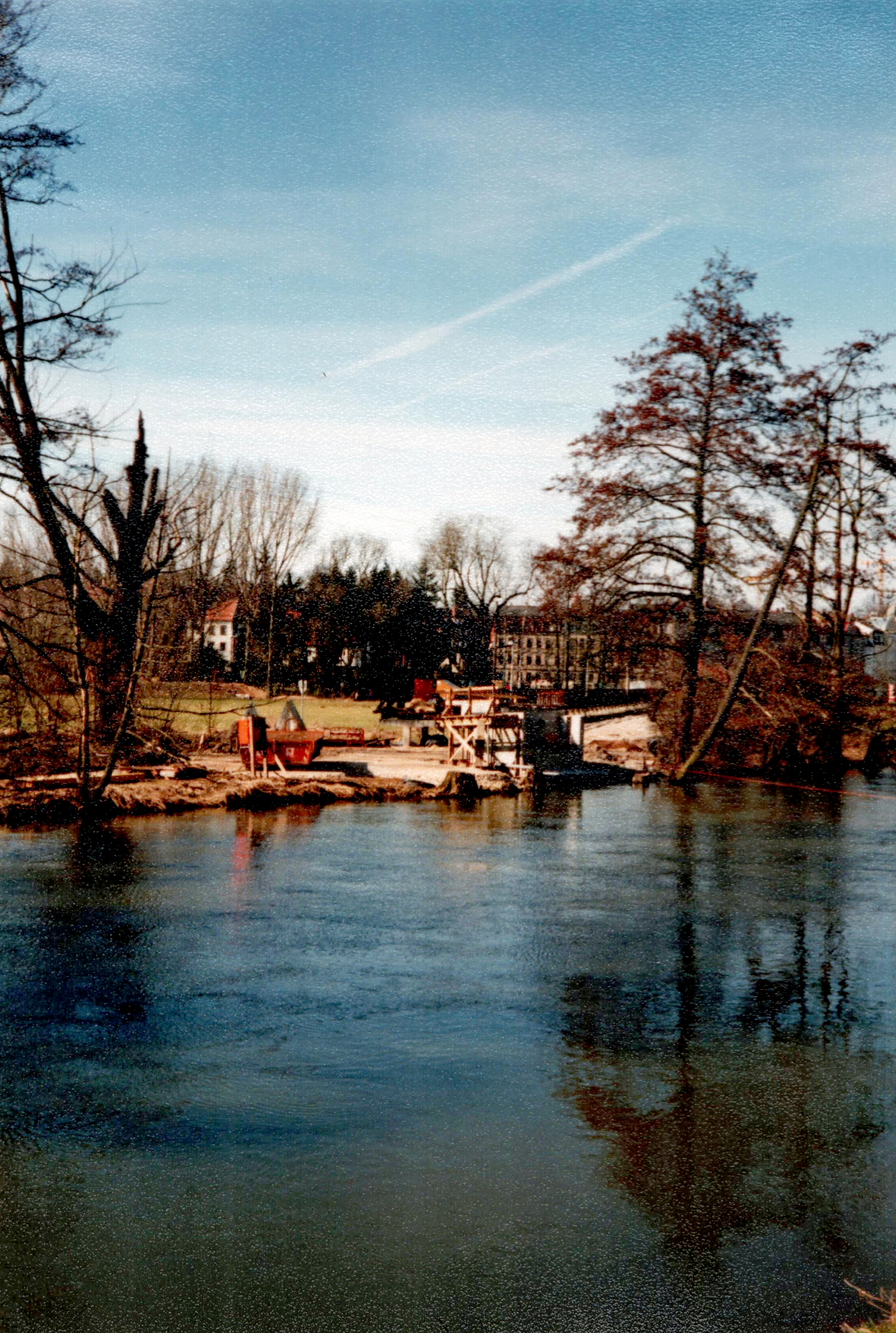 | Beschreibung | Neubau der Hardsteg-Brücke über die Rednitz, im Hintergrund Häuser an der Cadolzburger Straße, Feb. 1994 | ||