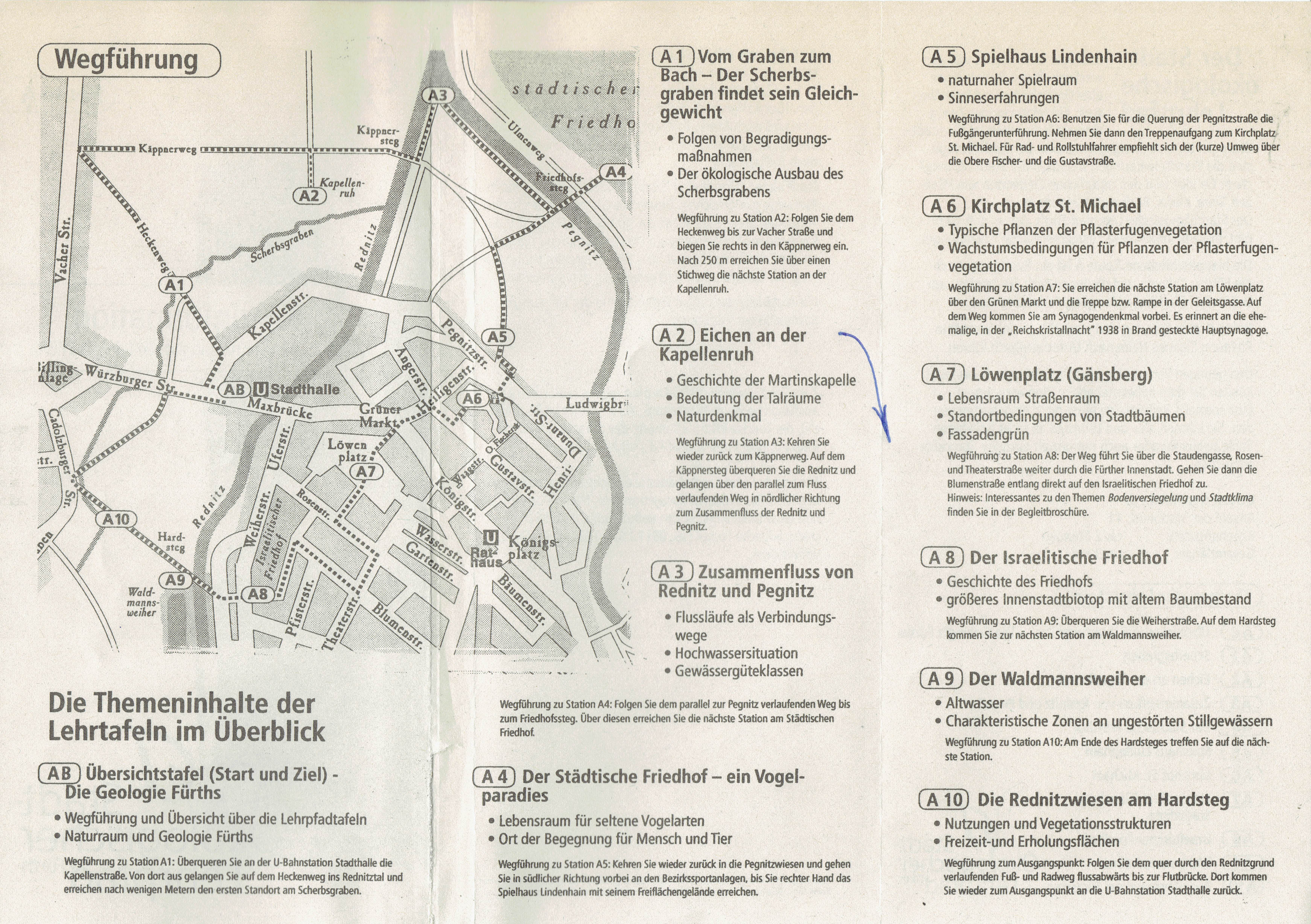 | Beschreibung | Themenüberblick Stadtökologischer Lehrpfad Fürth Route A (Broschüre), 2000 | ||