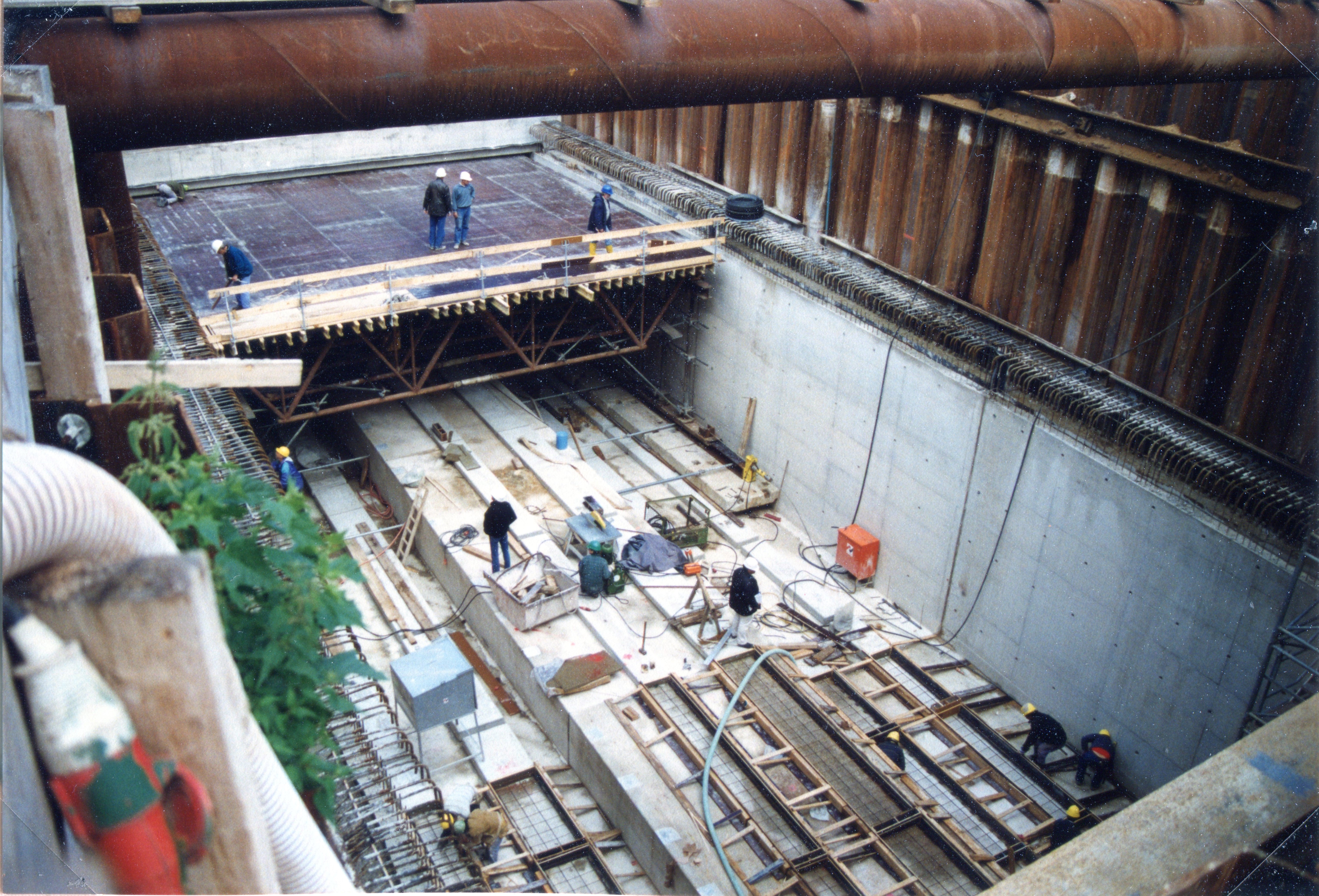 | Beschreibung | Bauarbeiten am U-Bahnhof Stadthalle im August 1996 | ||