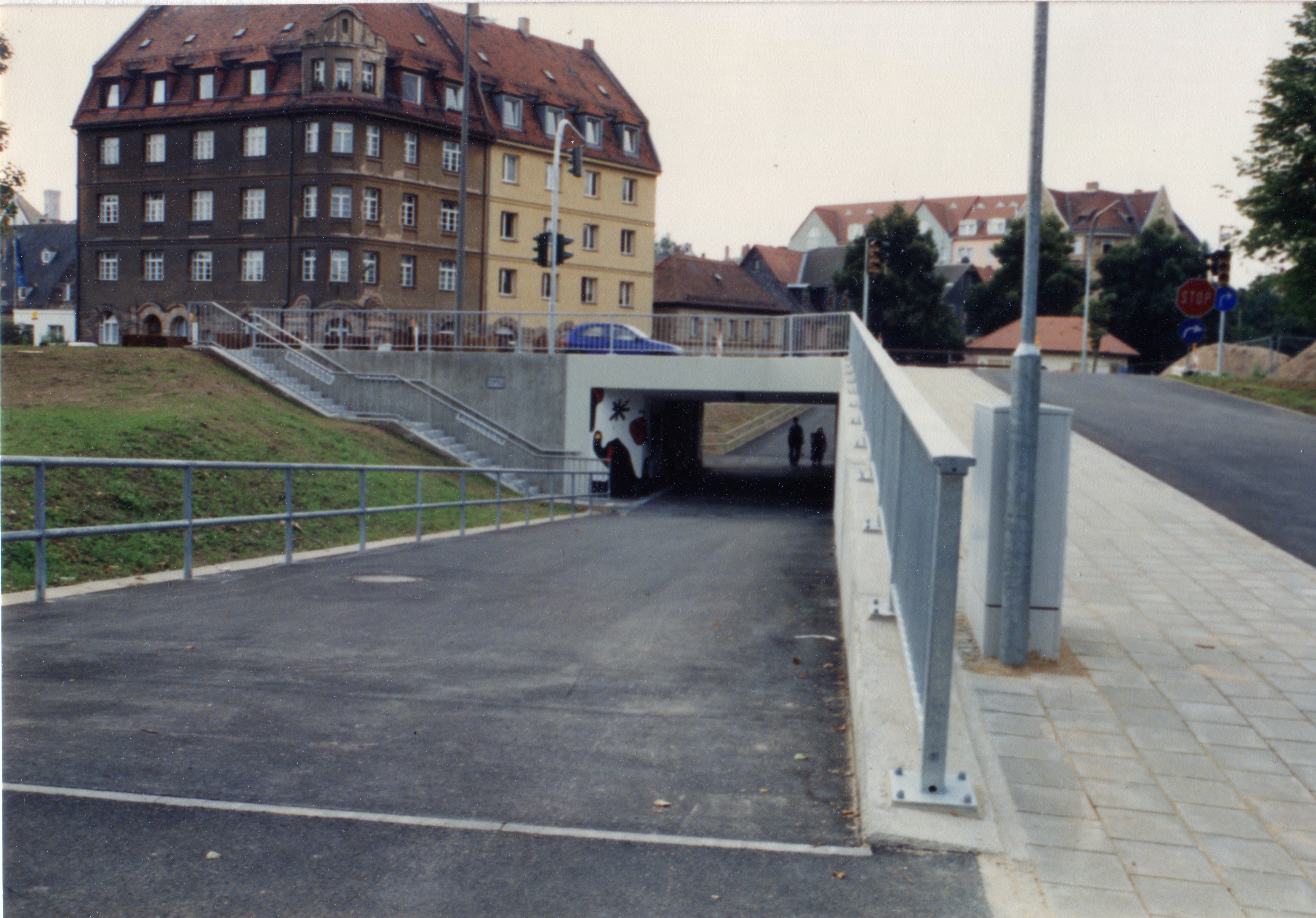 | Beschreibung | Die Unterführung Schießplatz unter der Kapellenstraße kurz nach ihrer Eröffnung. Im Hintergrund die Gebäude Pegnitzstraße 41 und Schießplatz 24, Aug. 1996 | ||