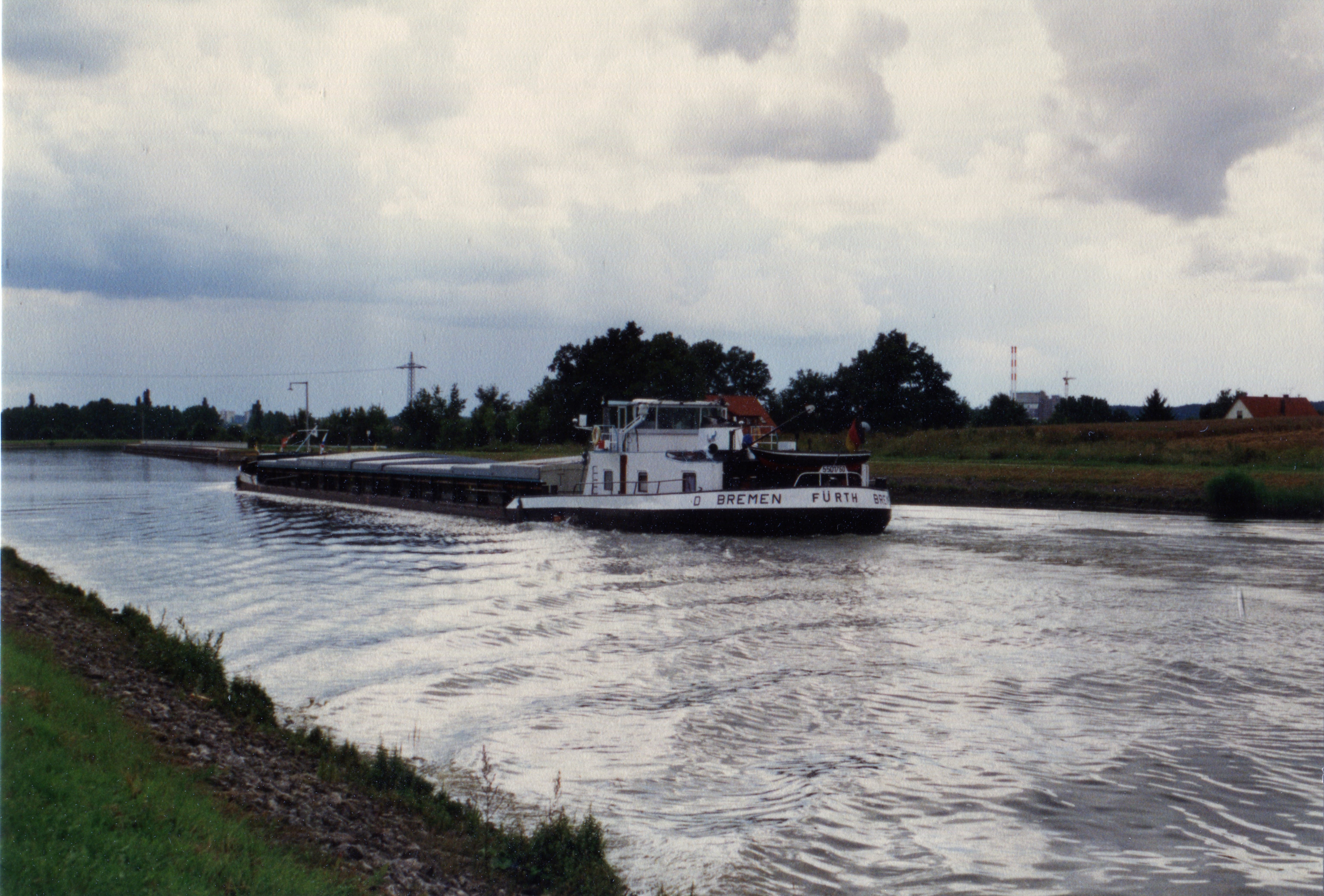 | Beschreibung | Schiffsverkehr auf den Main-Donau-Kanal Höhe Atzenhof. Im Hintergrund die Westseite der Kanalbrücke Zenn im August 1996 | ||
