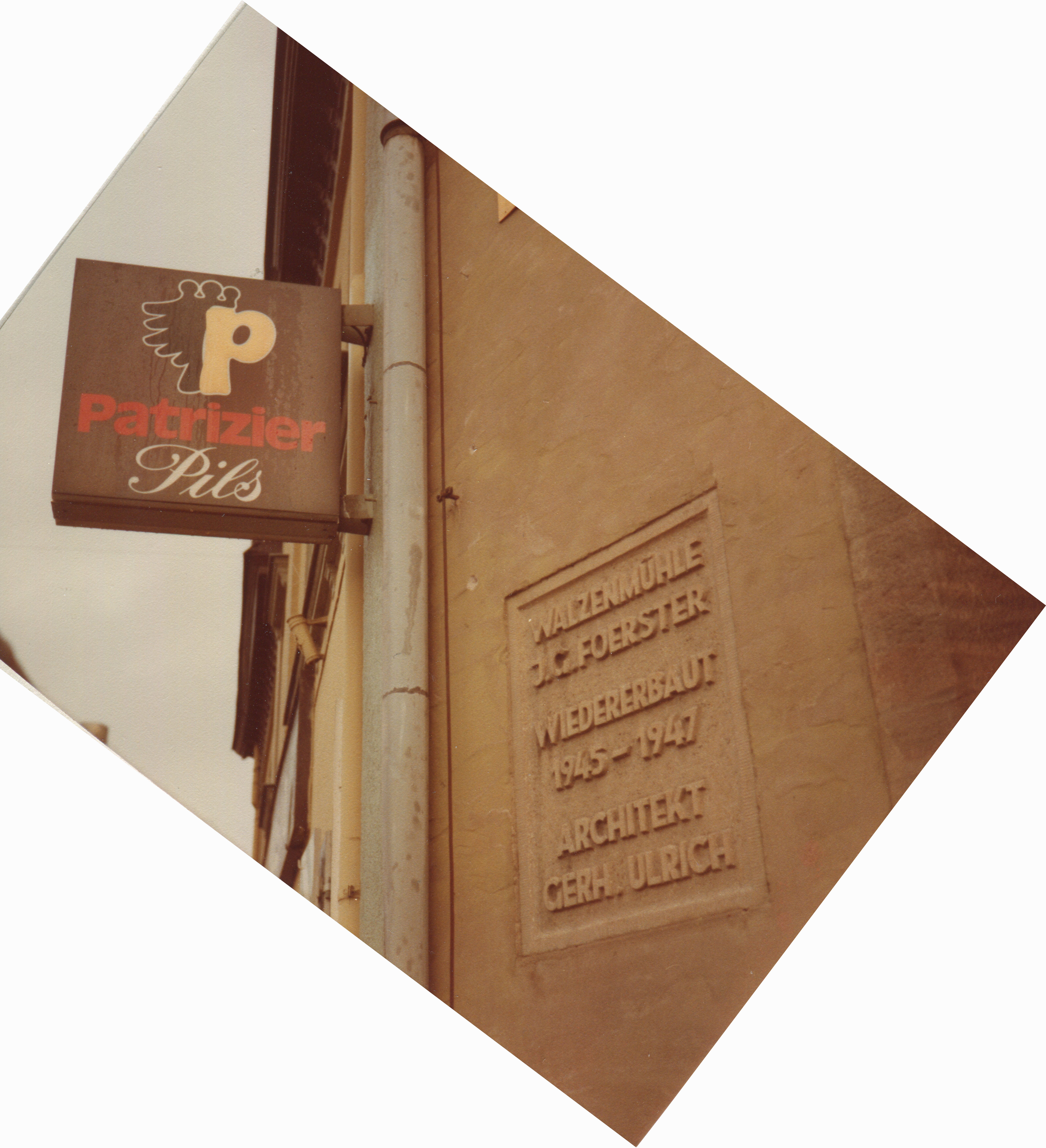 | Beschreibung | Mauerstein zum Wiederaufbau der Foerstermühle am ehem. Fischhäusla mit Werbung für Patrizier, Jan. 1983 | ||