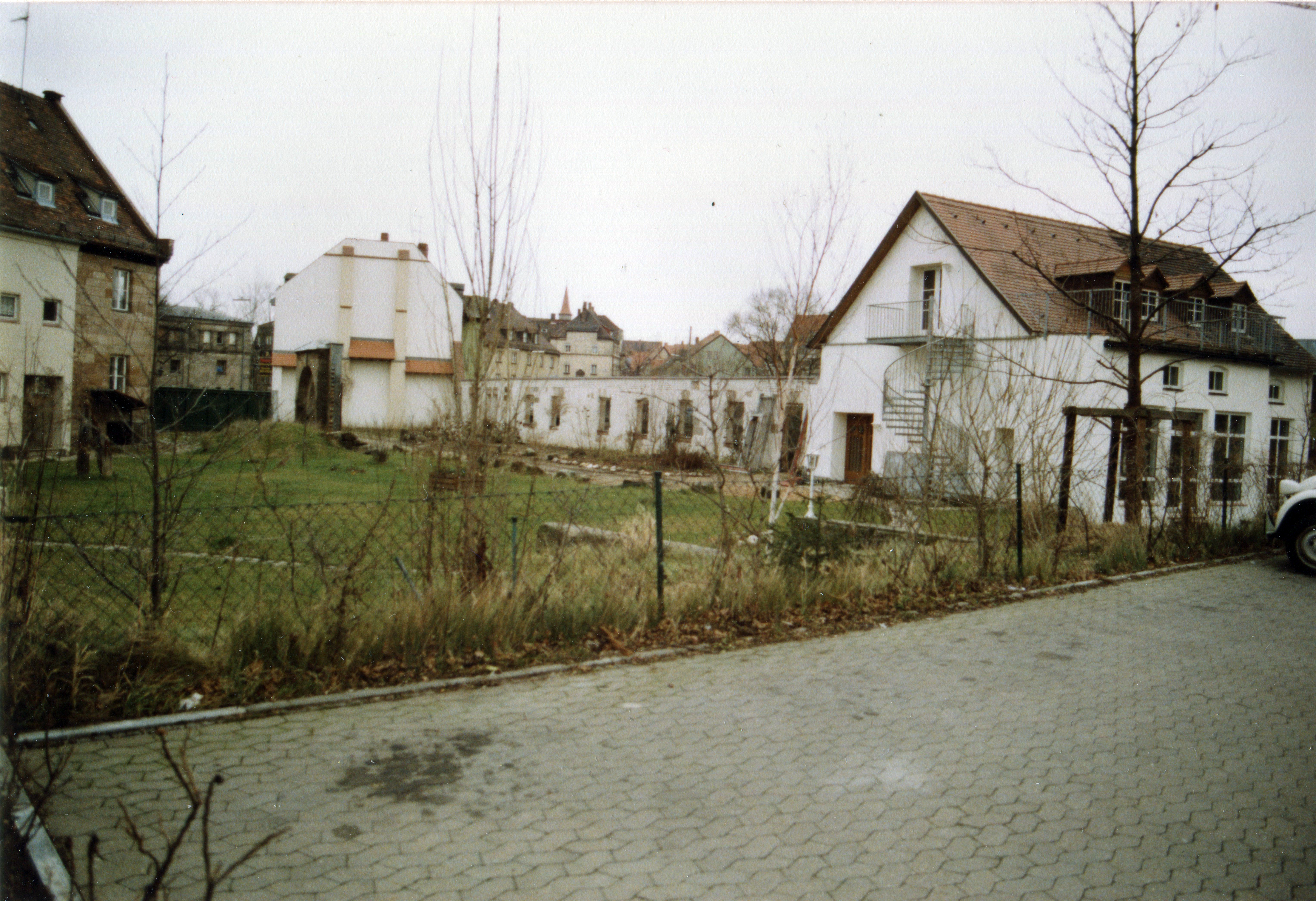 | Beschreibung | Blick von der neu gebauten Kursana in das Gartengrundstück der ehem. Foerstermühle - Bildmitte im Hintergrund die ehem. Gaststätte Fischhäusla vor dem Abriss, Jan. 1989 | ||