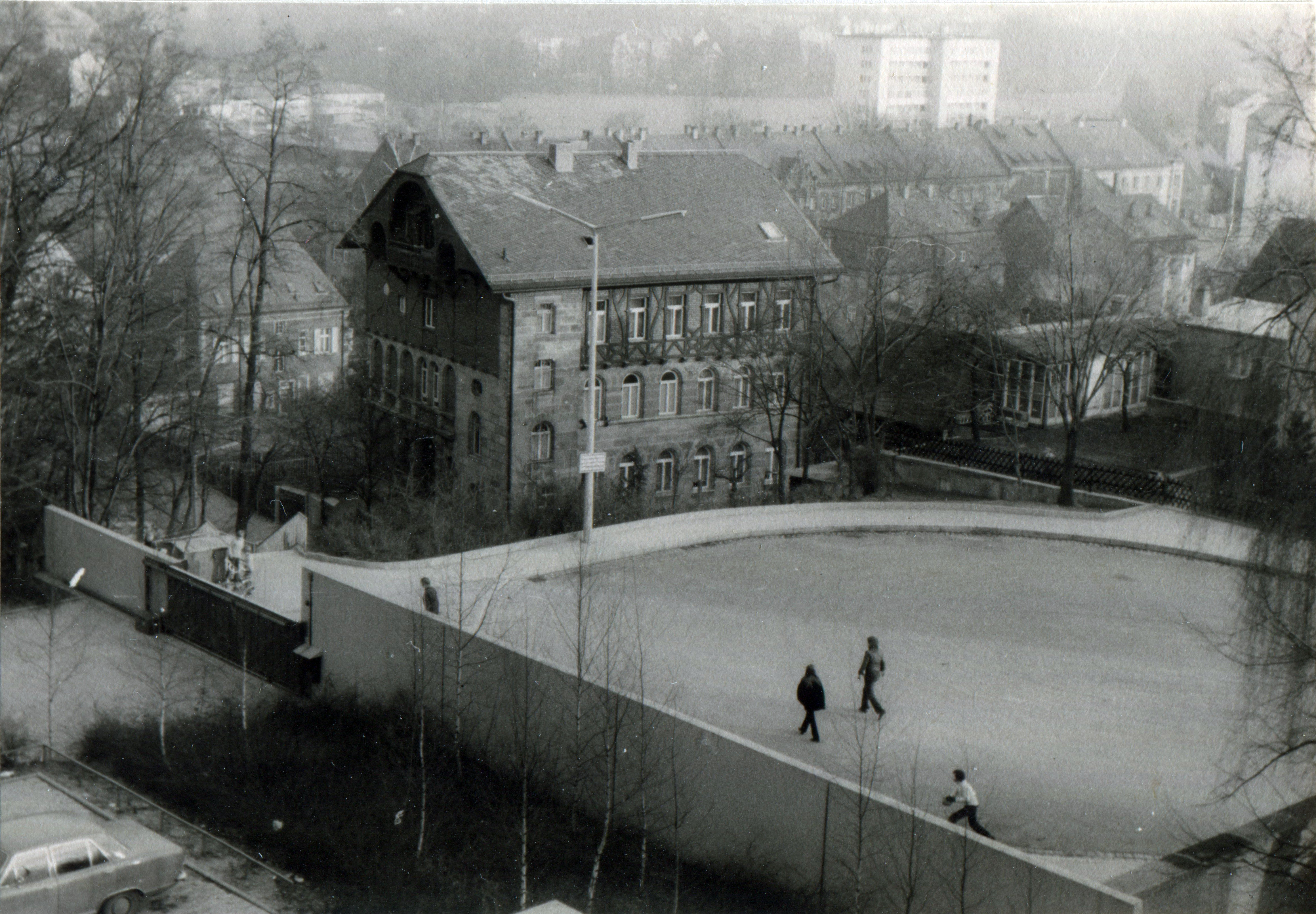 | Beschreibung | Blick von der ehem. Kinderklinik auf die Wendeschleife in der Jakob-Henle-Straße bzw. auf das Gebäude Jakob-Henle-Straße 38, März 1973 | ||